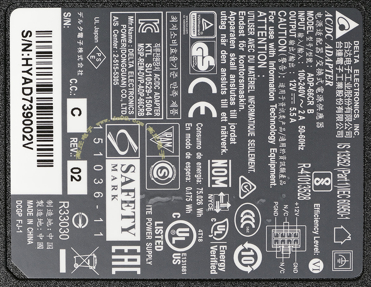 全球知名电源制造企业台湾“台达”生产,输入100V-240VAC,输出12V-4.16A。 CE,GS,JET,UL多种产品认证。 |
