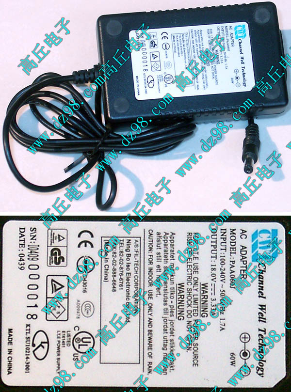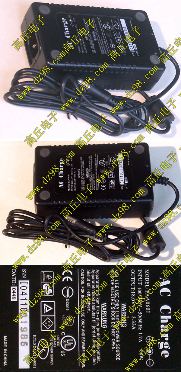 库存无包装 | 输入AC100V-240V,输出DC18V-3.33A,多种认证。 | 价格同AB52 |