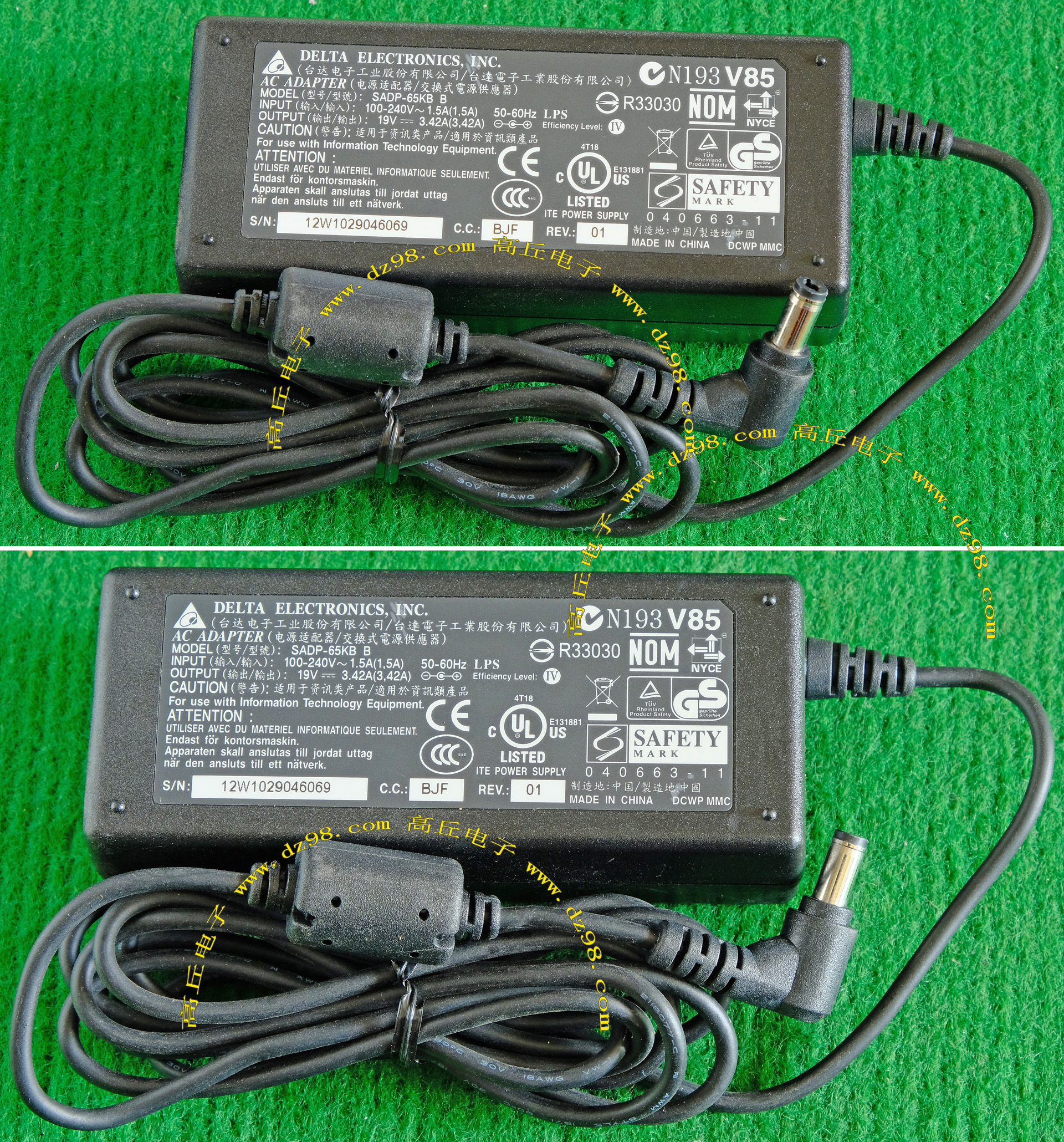全新备件 | 全新备件,索尼电视机备用配件,没有独立包装,外观约9成新,输入AC100V-240V,输出DC19.5V,3.05A,输出DC插头外直径6-6.5mm,内通电芯直径约1mm,输出线长度达1.4米,重量约275克。 |