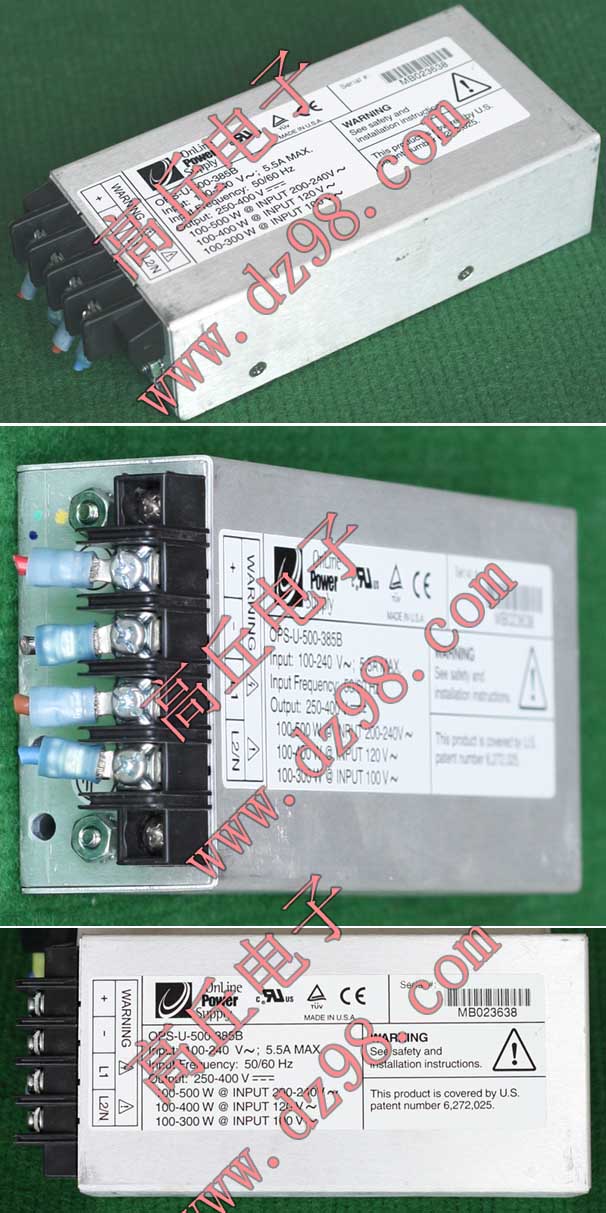 拆机件,产地美国,输入AC100V-240V,输出DC385V,最大输出功率:100V输入=300W、120V输入=400W、200-240V输入=500W。外形尺寸(含接线端子):165mm