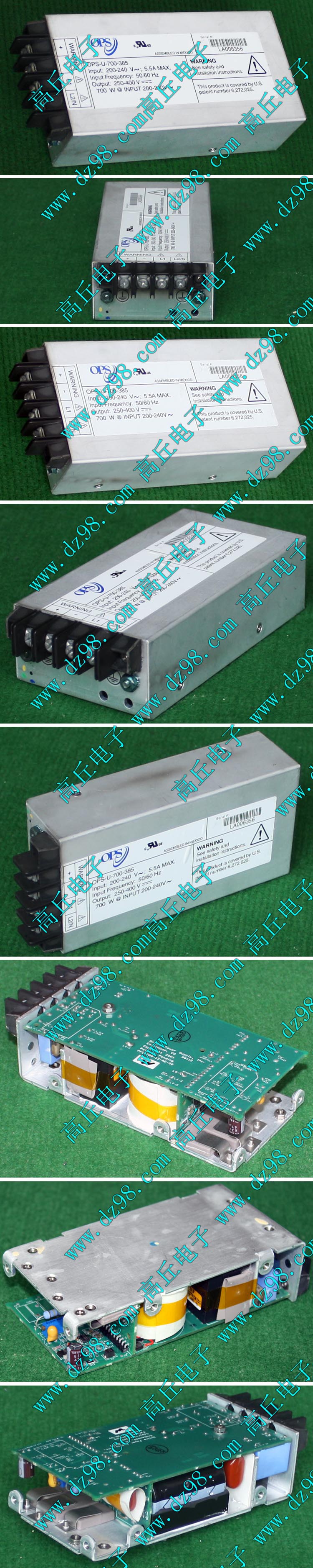 拆机件 | 拆机件,产地美国,输入AC200V-240V,输出DC385V,最大输出功率700W。外形尺寸(含接线端子):165mm x 74mm x 40mm,重量约600克。 |