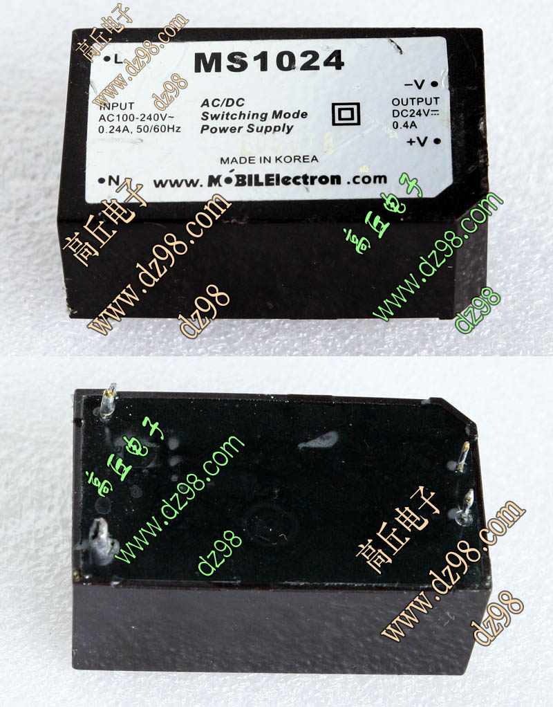 | MS1024 24V 0.4A AC-DC电源模块AI45 | 拆机件 | 输入交流100V-240V,输出DC24V,电流0.4A。外形尺寸:57.5x 35.7x 26.4毫米,重量约54克。 | 单价30元。 |