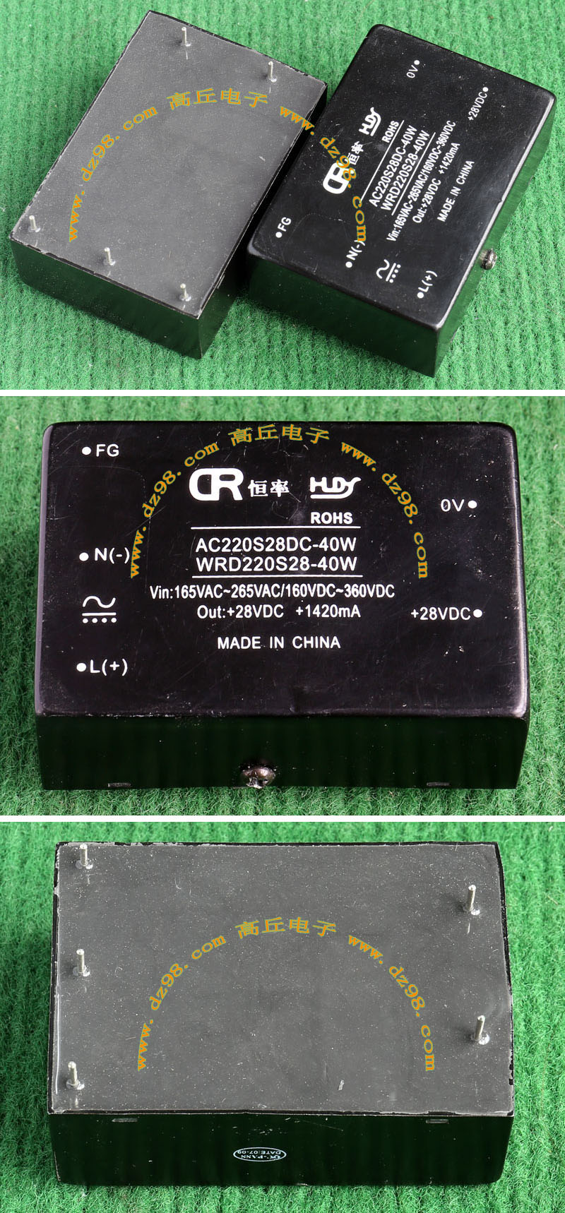 AC220S28DC-40W、WRD220S28-40W,输入电压AC220V,输出DC28V,电流1.42A、40W。 外形尺寸长73毫米,宽度50毫米,厚度26毫米。重量约169克。 |