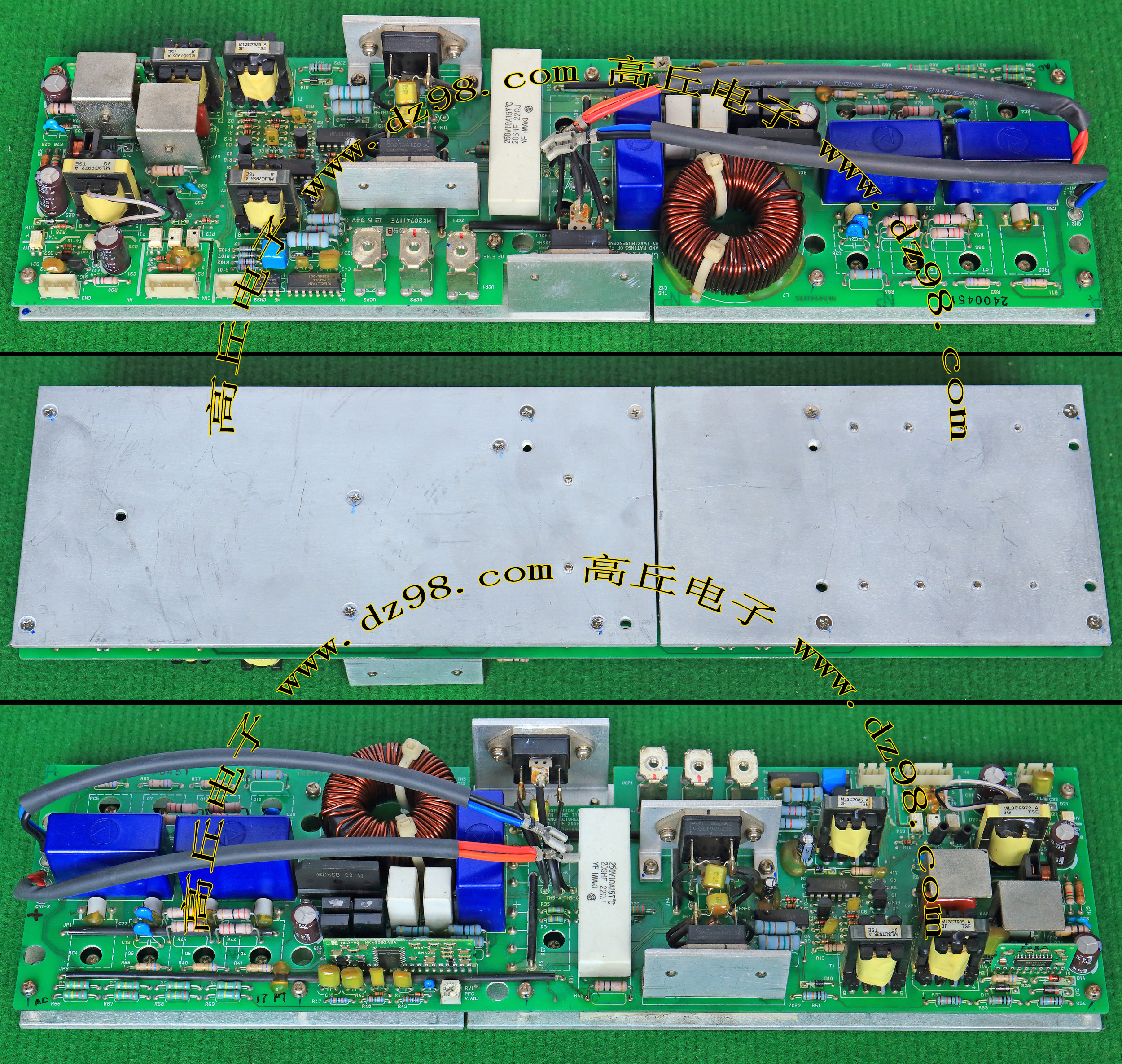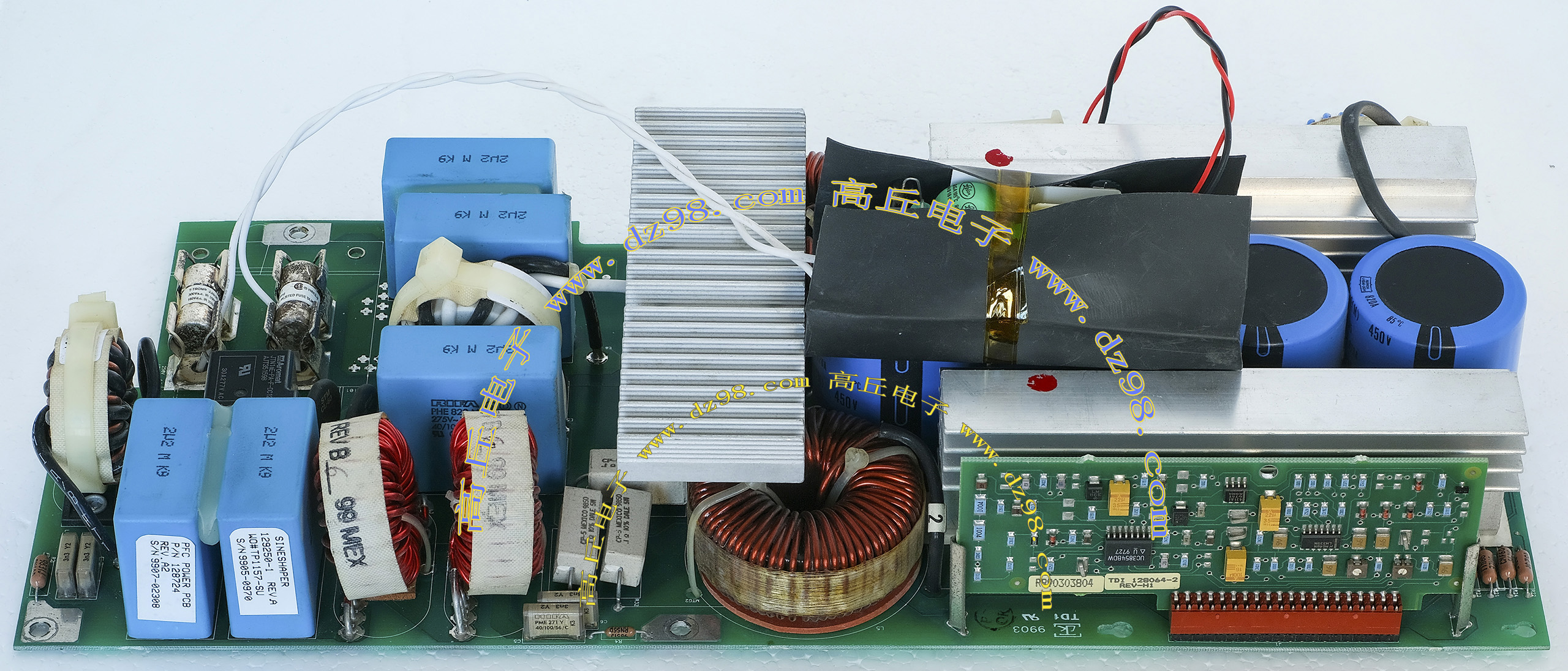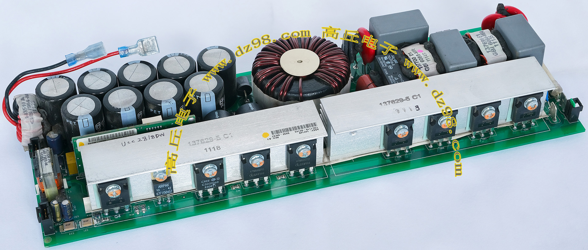 | 进口拆机 3.3KW 398V PFC升压型电源AI89 | 拆机件 | 进口拆机,输入AC85V-275V或者DC120-275V,输出DC398V(+ -3V),输入100V输出1500W,输入220V输出3300W。电路板外形尺寸:长235mm x 宽102mm x高41.5mm,重量约1385克。 |