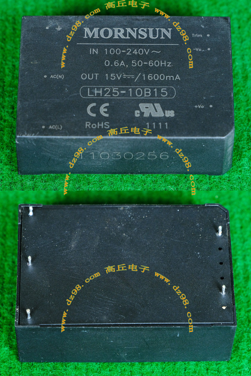 | MORNSUN LH25-10B15 100-240V转15V 1.6A 25W AC/DC电源模块AI68 | 拆机件 | 外形尺寸;长70毫米,宽度48毫米,厚度24毫米。重量约117克。 |