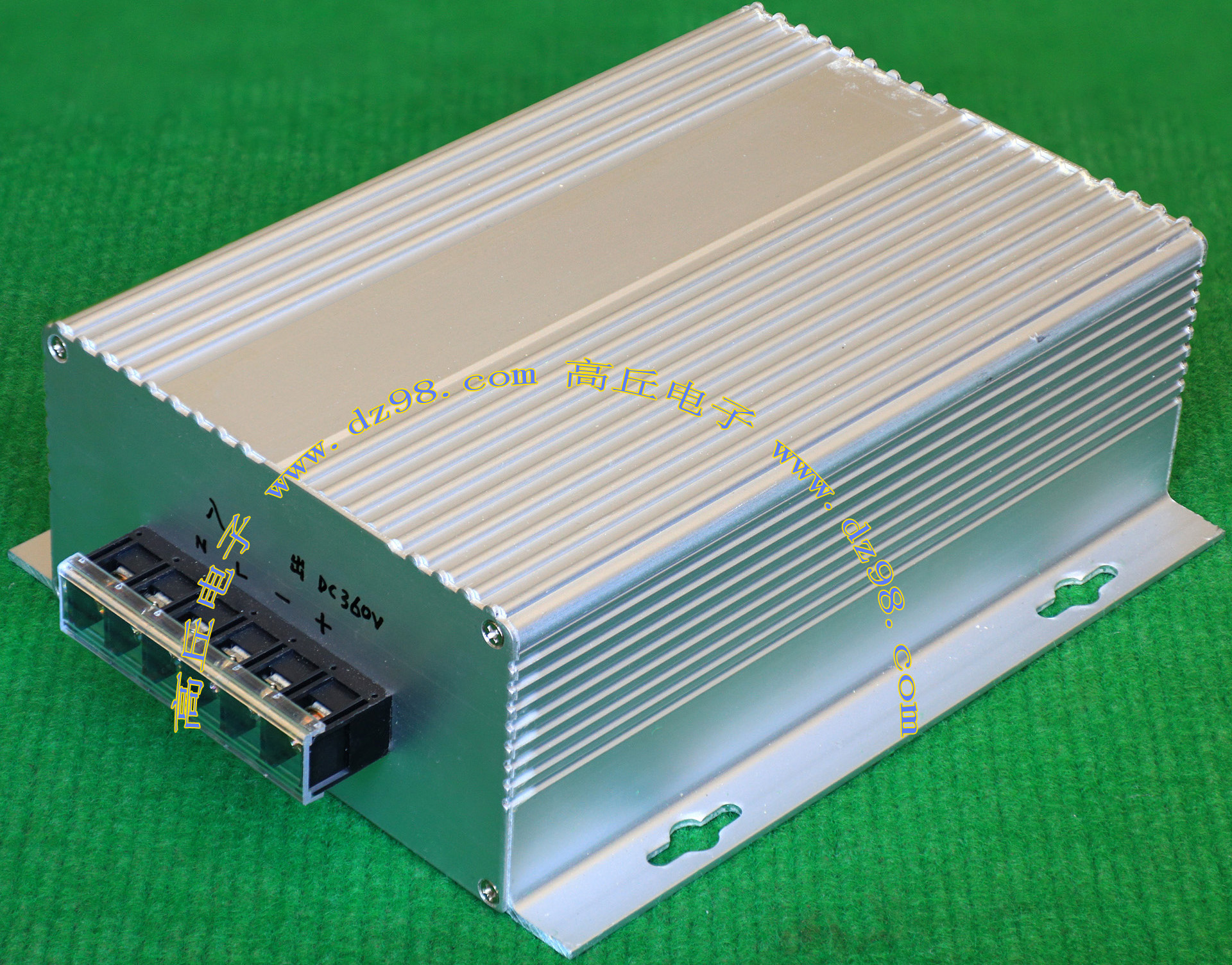 输入电压AC100-260V,也可以直流输入DC130V-300V,输出电压直流约360V,输出功率;100V输入最大500W,输入高于200V最大750W。 外形尺寸 看图片,使用必须装配散热器,整体重量约260克。 |
