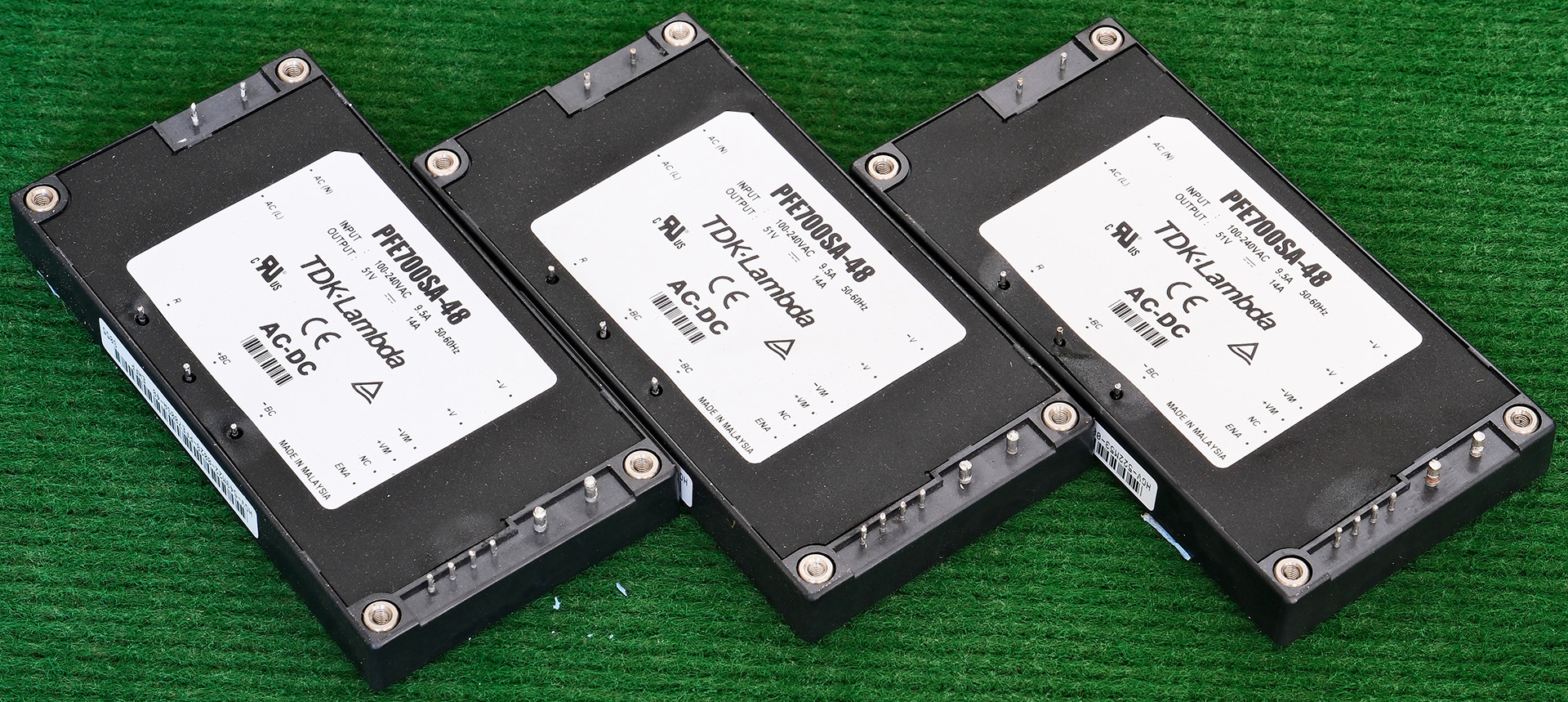 | TDK-LAMBDA PFE700SA-48 100-240VAC转DC51V 14A 700W电源模块AI93 | 拆机件 | 拆机件,实物参照图片,输入AC100-240V,输出DC51V,电流14A,功率7000W。外形尺寸:长度116毫米x宽度61毫米x高度13毫米。 |