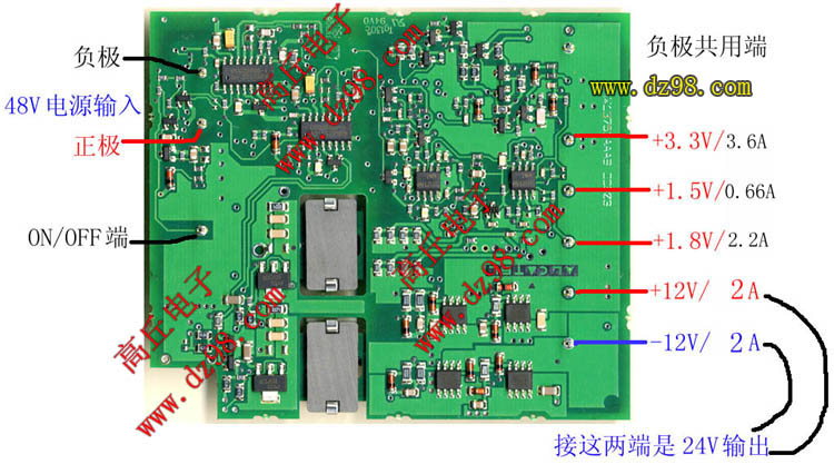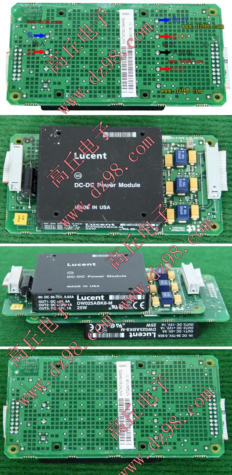 拆机件 输入DC34V-75V,输出:3.3V-12A/2.5V-15A,输出功率40W。 单价30元。 阿尔卡特(ALCATEL)全新5路输出电源模块AKA009 AK151