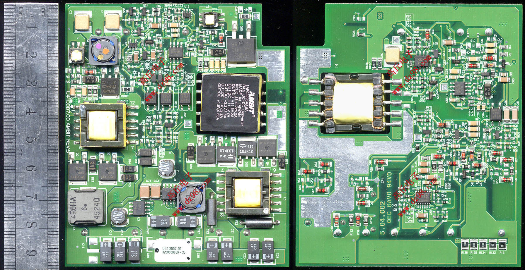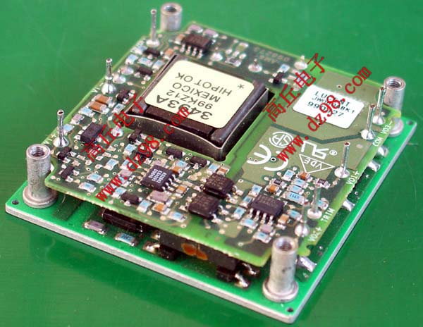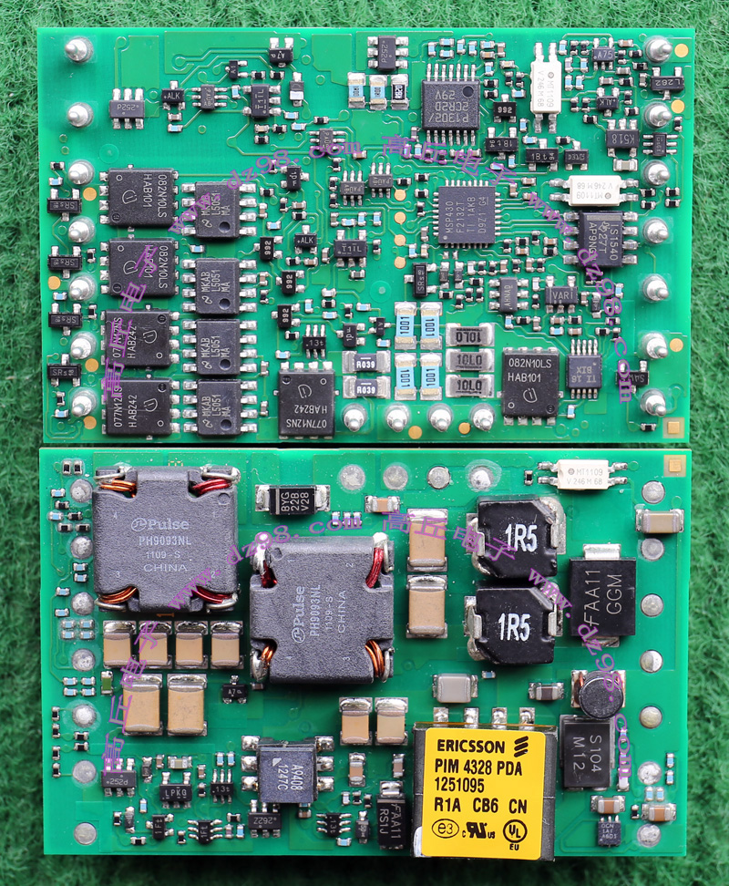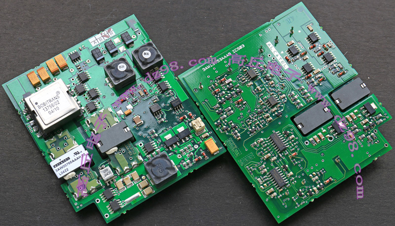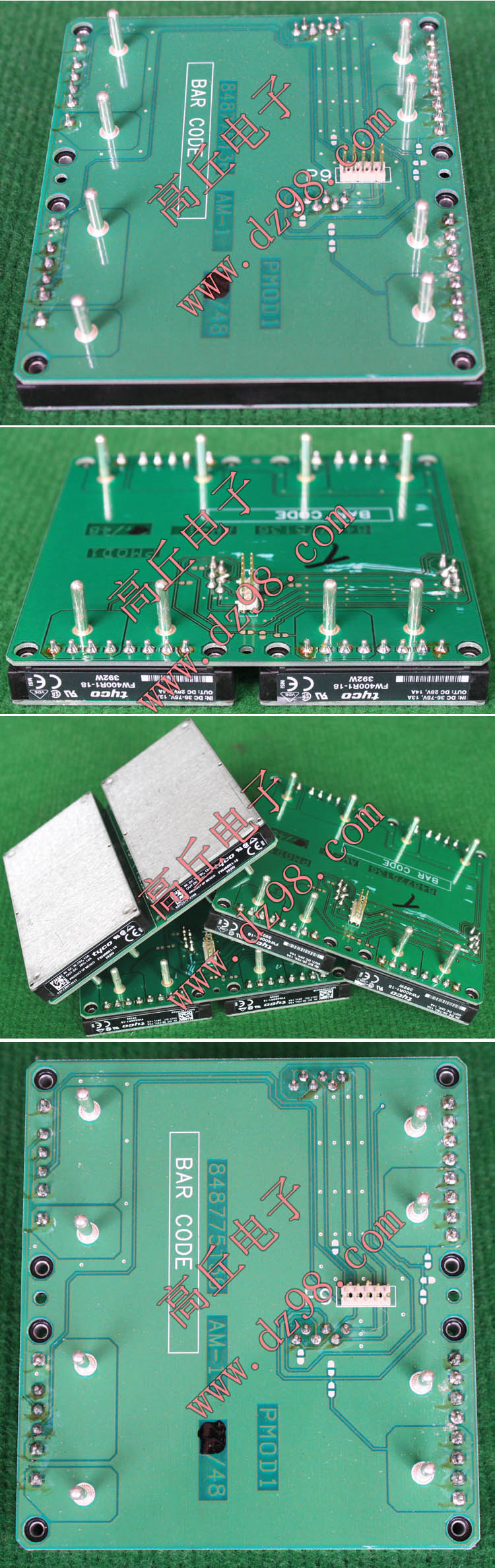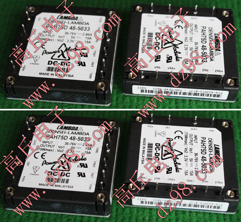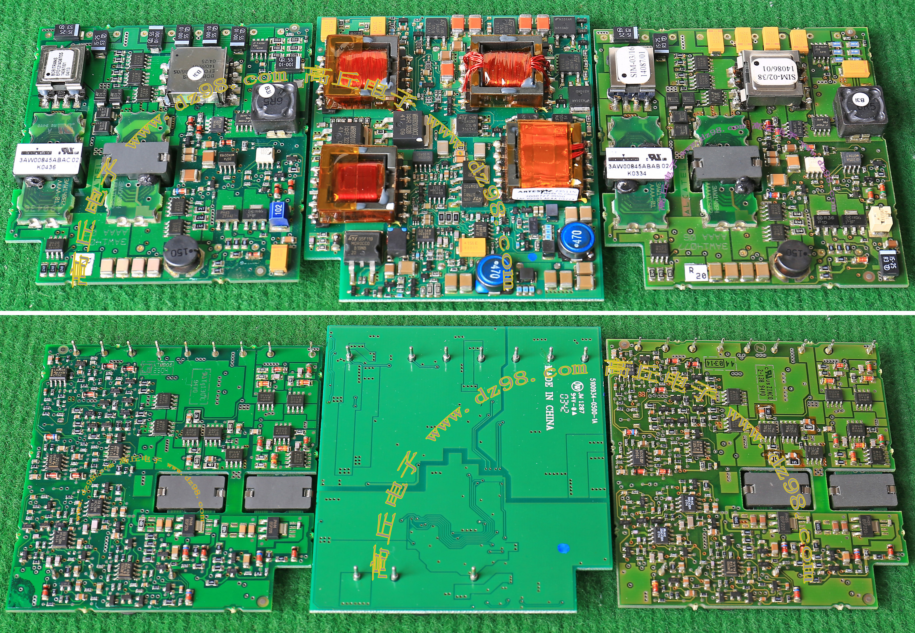 拆机件 拆机件,连线路板卖,每板装两只电源模块,每只模块参数是:输入DC36-60V,输出28.2V-21.4A=600W,整板输出功率达1200W。 单价320元。 LAMBDA PAH75D48-5033双路电源模块AKA017 AK223