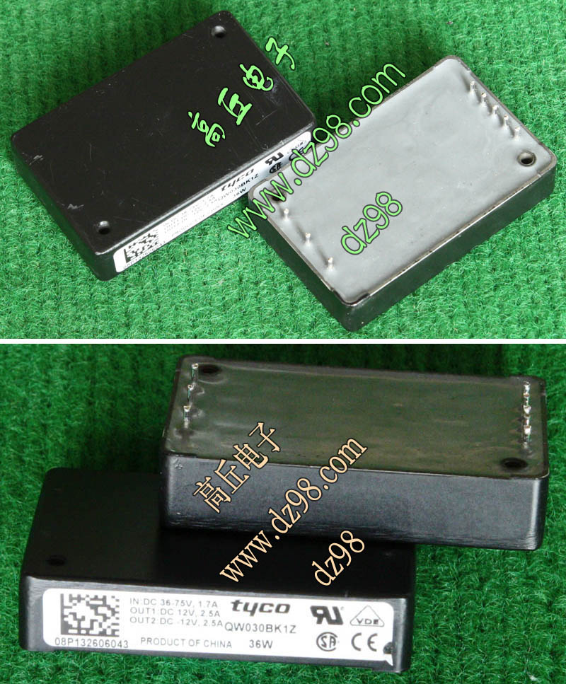 拆机件 拆机件,一板内含2只TYCO 400W电源模块,输入电压36V-72V,输出两个28V 400W。关于单个模块的使用请看本网页商品编号AK124和AK29。 单价175元。 TYCO LW005BK电源模块AKA019 AK239