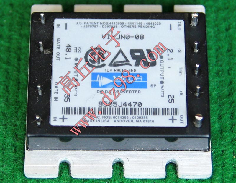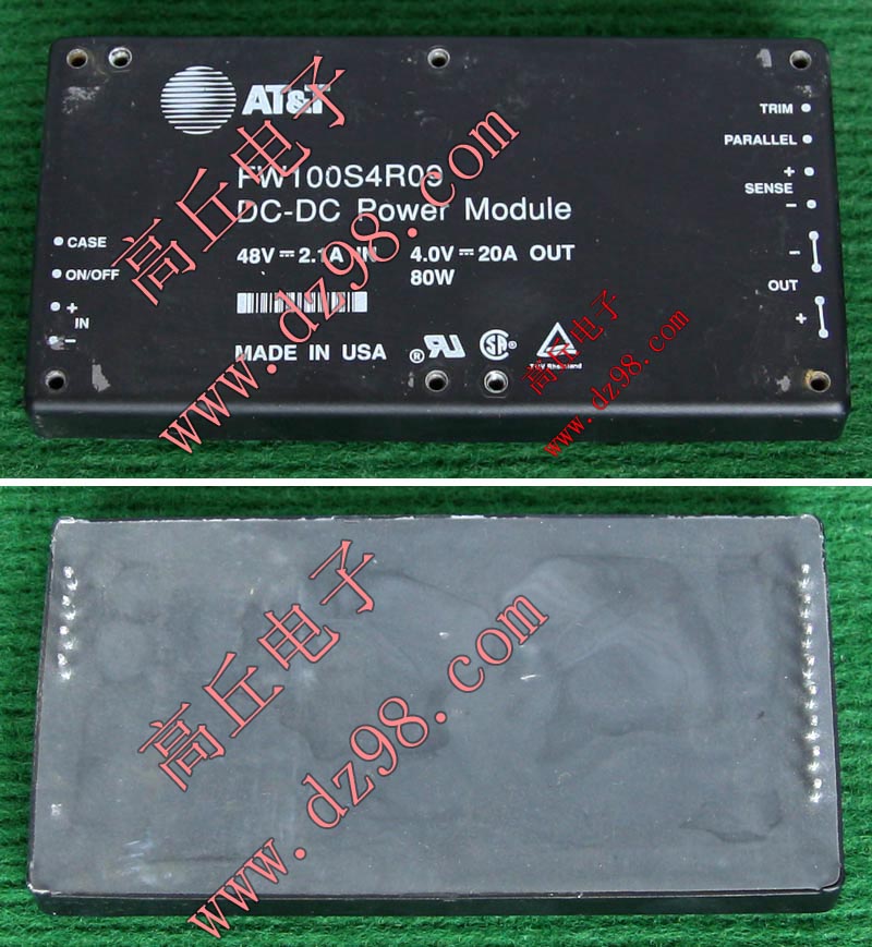 全新 输入电压36V-75V,输出电压3.3V,电流3.5A。超小尺寸:28.3毫米x24.5毫米x8毫米。重量约7.8克。 VICOR VI-JN0-08 2.1V 25W电源模块AKB025 拆机品 输入电压48V,输出电压2.1V,电流12A,最大输出功率25W。尺寸:61毫米x58毫米x13毫米。重量约86克。 单价30元。 AT&T FW100S4R09 4V 20A电源模块AKB024 AK336