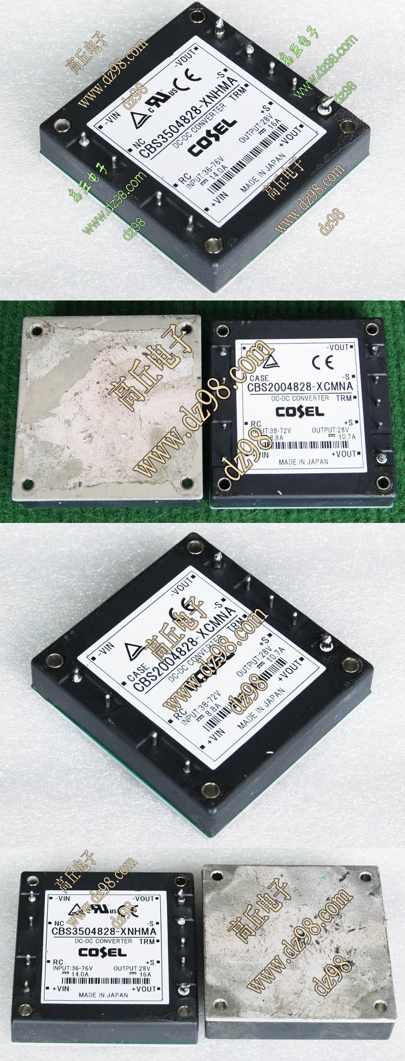 | COSEL CBS2004828输入38V-72V,输出28V 10.7A电源模块AKE041 | 拆机件 | 输入电压38V-72V,输出电压28V,10.7A,功率300W。尺寸:61毫米x58毫米x13毫米。重量约74克。 | 单价80元。 |