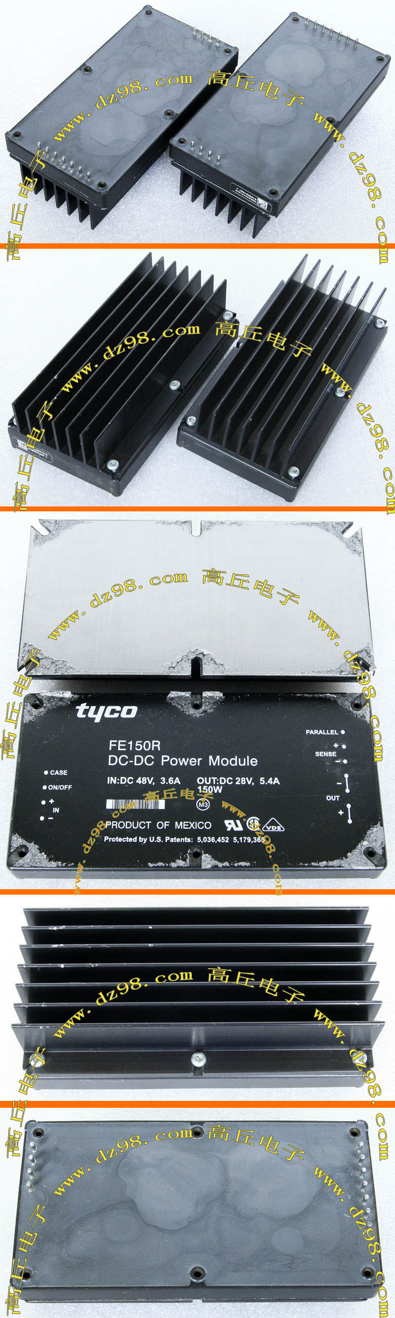 | TYCO FE150R 0109951H07 28V 5.4A 150W电源模块AKE046 | 拆机件 | 输入电压36V-72V,输出电压28V,电流约5.4A,输出最大功率150W。每只都带原配散热器。尺寸:122毫米x63毫米x13毫米 (连散热器37毫米)。连散热器重量约330克。 | 连散热器单价55元。 |