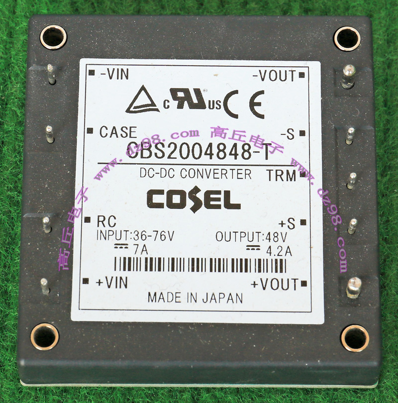 | COSEL CBS2004848-T 36-76V转48V 4.2A 200W电源模块AKE058 | 拆机件 | 输入电压36V-75V,输出48V,电流4.2A。尺寸:61毫米x58毫米x13毫米。重量约71克。 |
