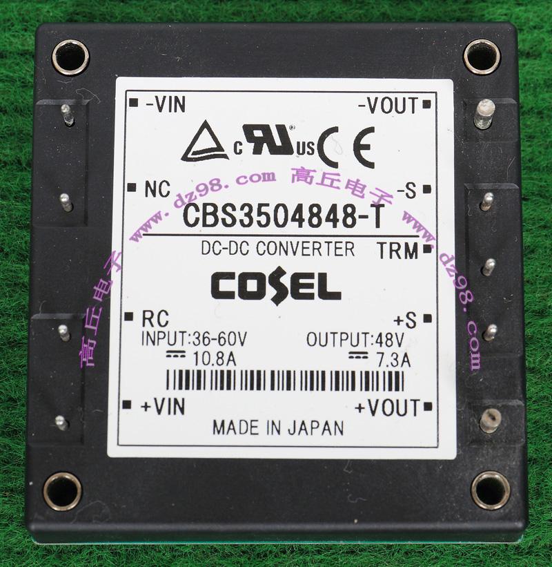 | COSEL CBS3504848-T 36-60V转48V 7.3A 350W电源模块AKE060 | 拆机件 | 输入电压36V-60V(本模块最高支持80V输入),输出48V,电流7.3A。尺寸:61毫米x58毫米x13毫米。重量约75克。 |