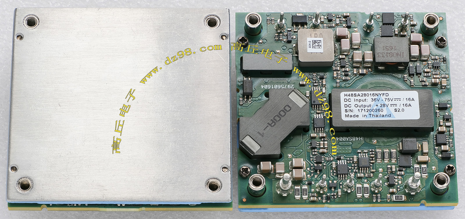 | SULET LDGH450-48S28GPSZ3 36-75V转28V 16A 450W 电源模块AKE081 | 拆机 | 拆机件,外形尺寸;长61x宽58x高13毫米,重量约81克。 |