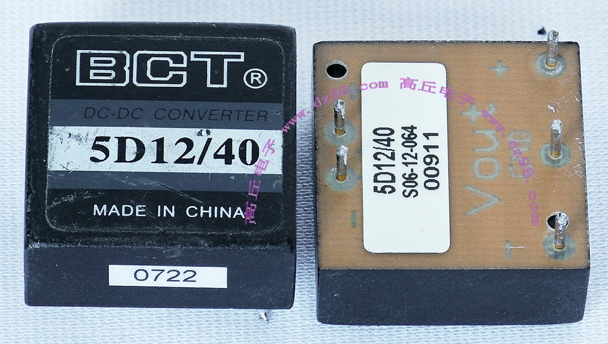 | BCT 5D12/40 5V转正负12V 40mA 电源模块ALA062 | 拆机 | 外形尺寸;长25.4x宽25.4x高12毫米。 |