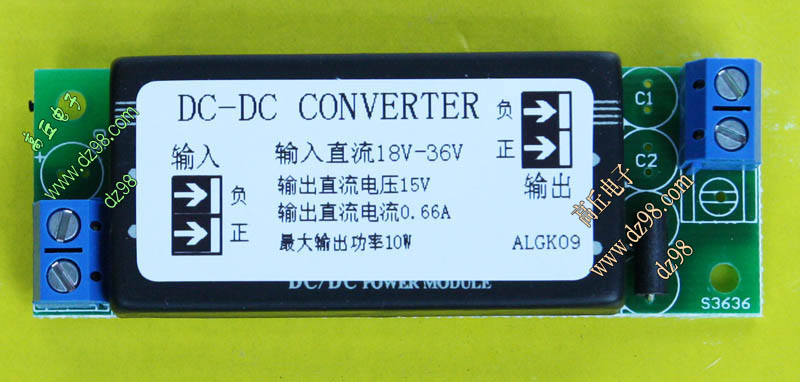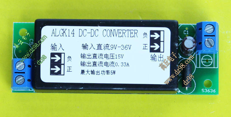 已组装为成品的模块电源,包含必须的输入和输出电容(元件根据不同批次变更),对应输出电压12V或者15V。简单接线:输入2线接直流电源(正负极性不可接反),输出2线接负载。 要买12V输出还是15V输出先联系好。 |