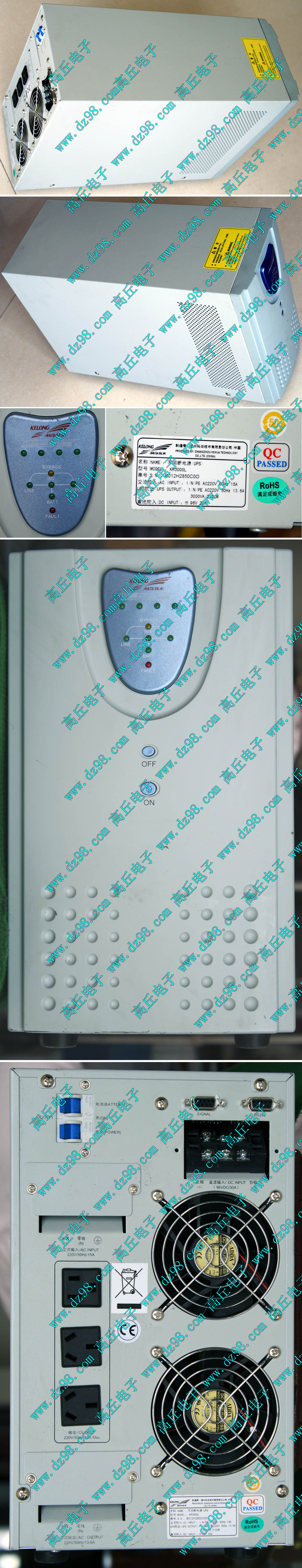 二手,外观不太好,本UPS标牌美国:郎讯LUCENT,生产厂家是美国:爱克赛,220V/功率6000VA=4000W,正弦波输出,