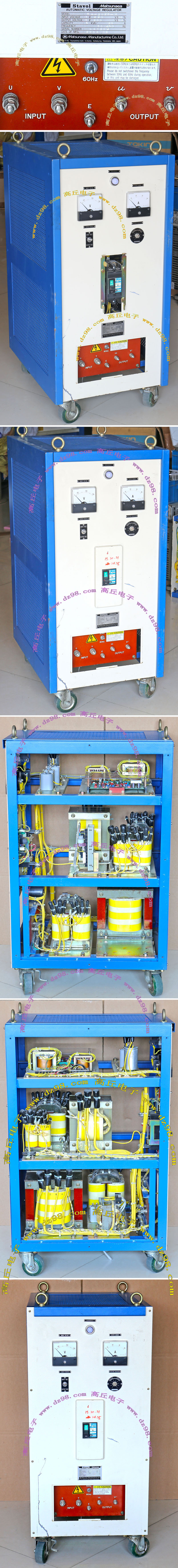 进口二手,产地日本,输入AC220V(+-15%),输出AC200-220V可调。外形尺寸;宽400毫米,深550毫米,高度920毫米,重量约100公斤多。 |