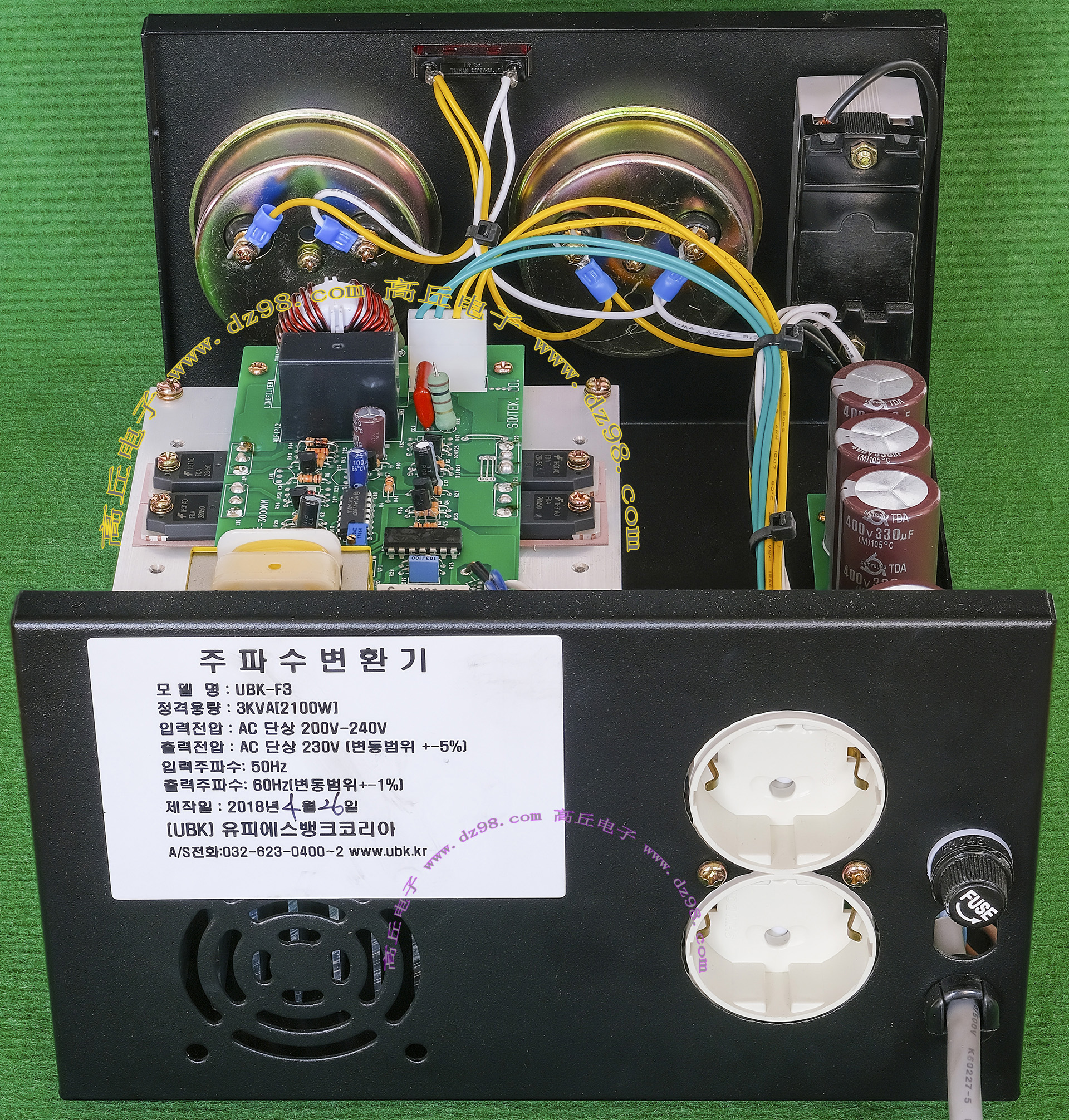 | 韩国产UBK-F3 AC200V-240V转AC230V 3KVA 2100W 交流电源AM51 | 进口拆机,实物参照图片,工作原理是;将200-240VAC交流电源重新变换成230VAC,功率3000VA/2100W。外形尺寸;330x230x150毫米,重量约5.2公斤。 |