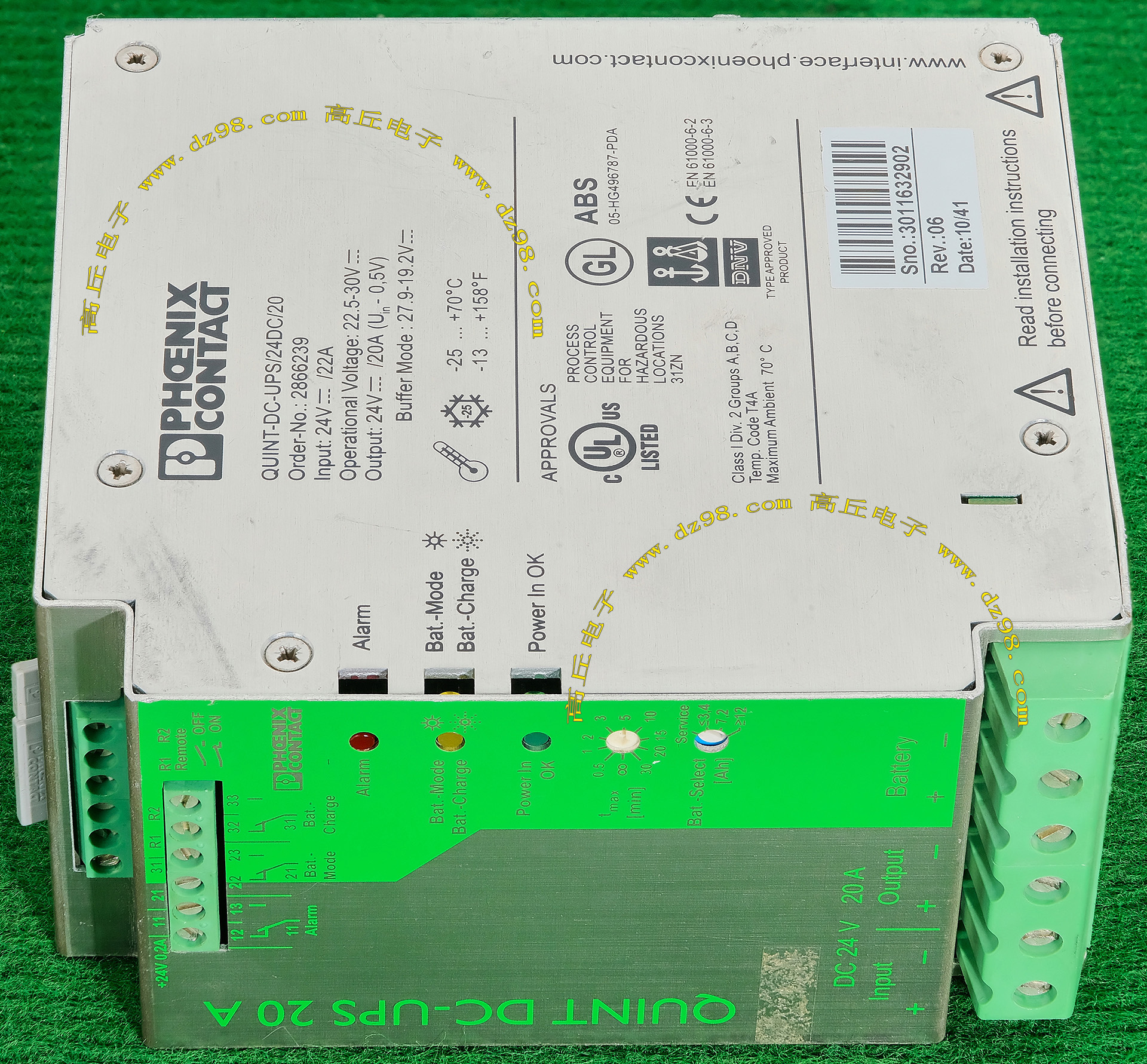 | PHOENIX CONTACT菲尼克斯QUINT-DC-UPS/24DC/20 24V 20A 直流UPS 不间断电源AM53 | 进口设备拆下,实物参照图片,厂牌:PHOENIX CONTACT菲尼克斯,正品原厂电源。输入DC24/22A,输出DC24V,电流20A,外形尺寸;135X132X66毫米,重量约810克 。 |