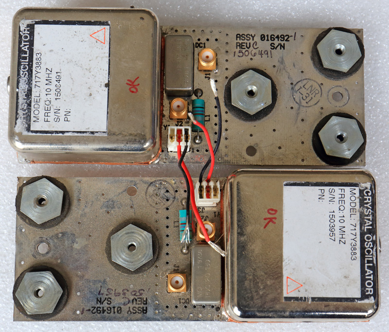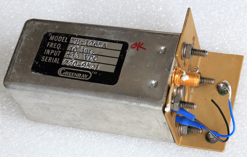 拆机件 | 拆机品,实物看图,从Agilent HEWLETT PACKARD Symmetricom GPSR-A机器内部拆下 ,10MHz标准正弦波信号输出,实测输出频率:10MHz少10-20Hz,核心恒温发振器型号E1938-60201,线路板组合整体型号E1938-60208,厂牌:国际电子仪器制造上---美国HP惠普,和图一样连线路板一起整体卖,外形尺寸:长143毫米x宽115毫米x厚25毫米(连接口厚36毫米),重量约330克。 | 7成新单价180元。 8成新单价225元。 9成新单价260元。 |