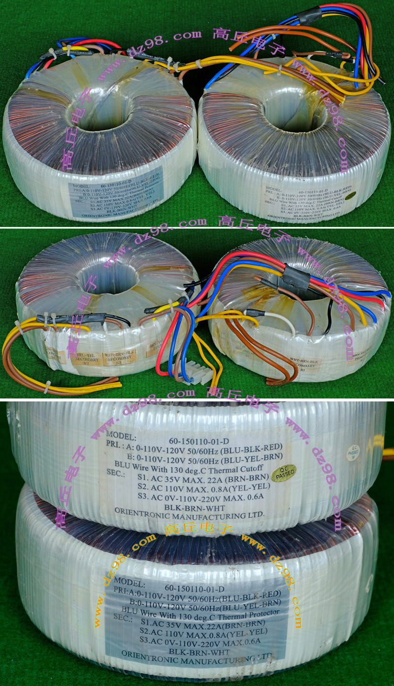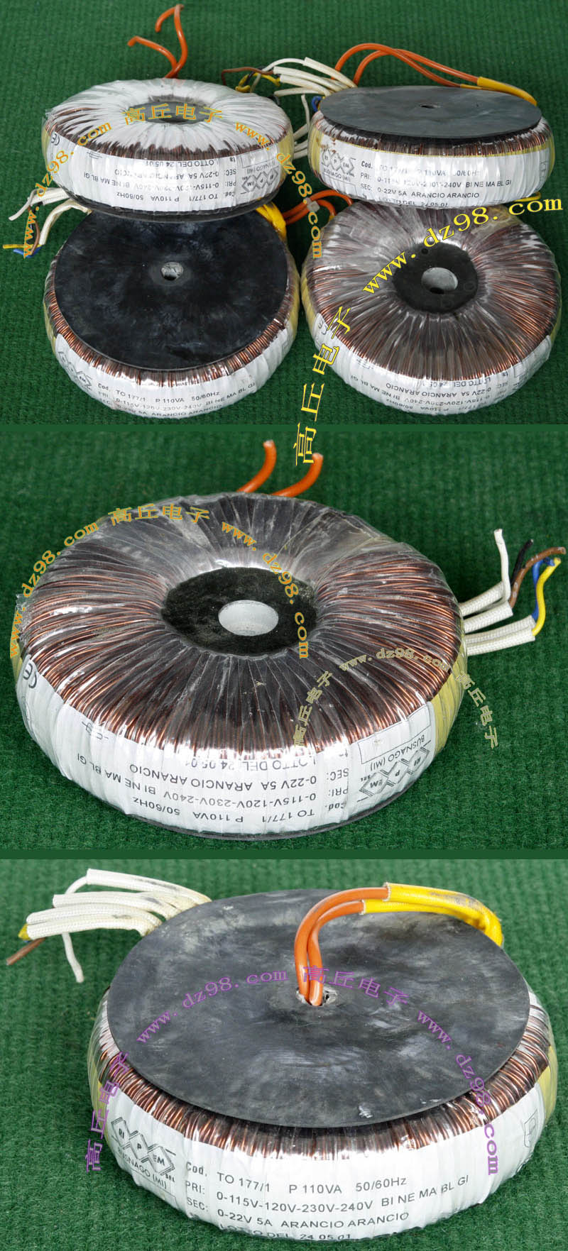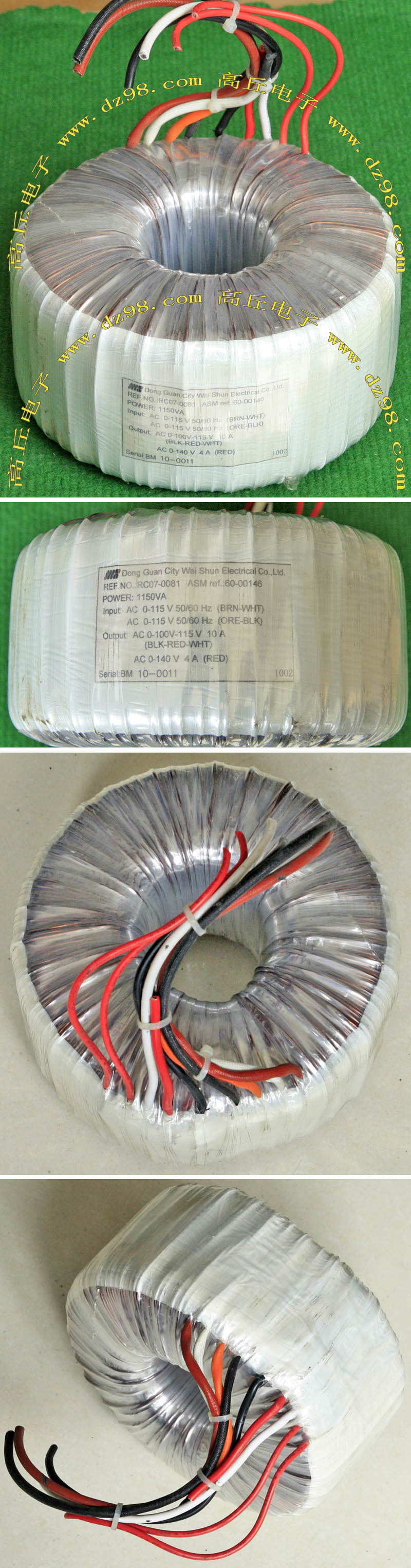 。输出一个120V绕组,功率1100VA,外形尺寸:直径170毫米,高度75毫米,重量约7250克。