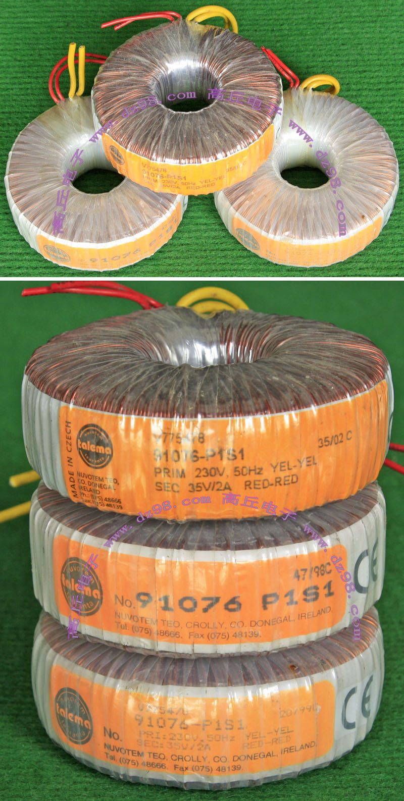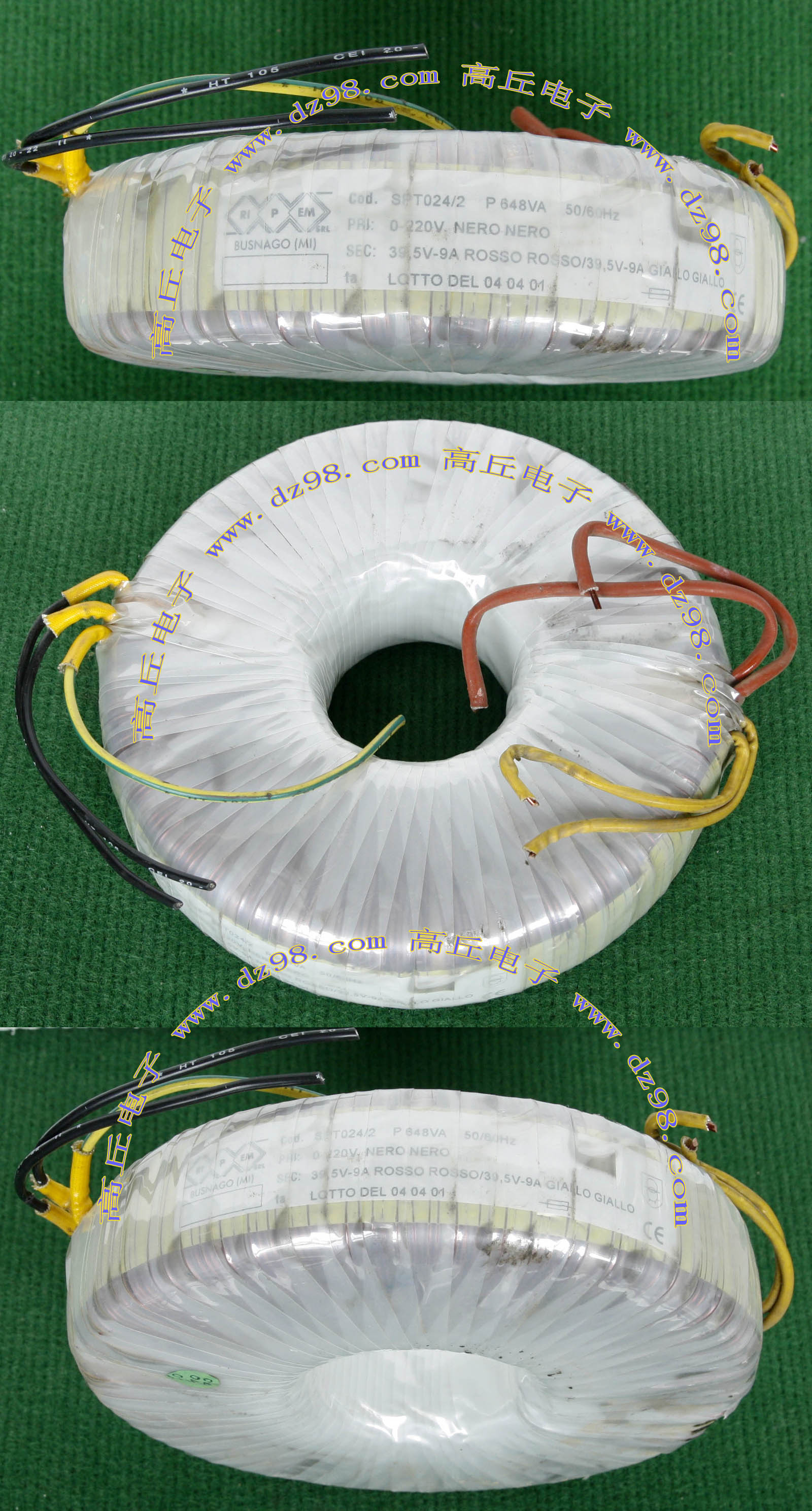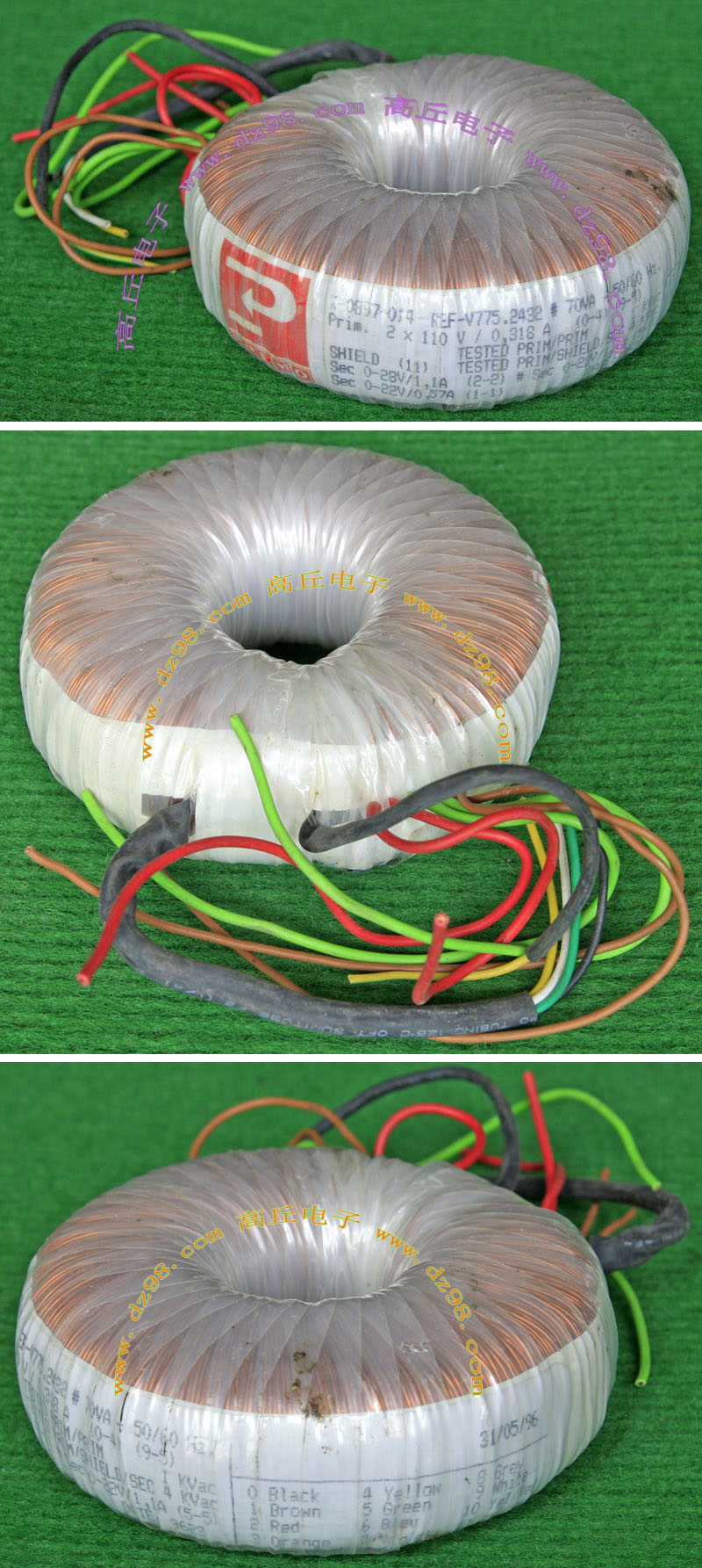 进口拆机件,外观8成新,输入1个绕组230V。输出绕组35V,功率50VA。外形尺寸:直径85毫米,高度35毫米,重量约750克。