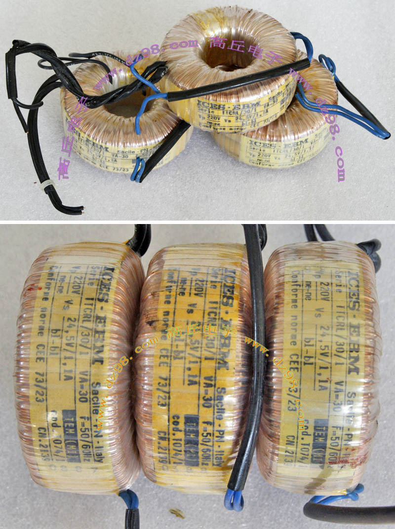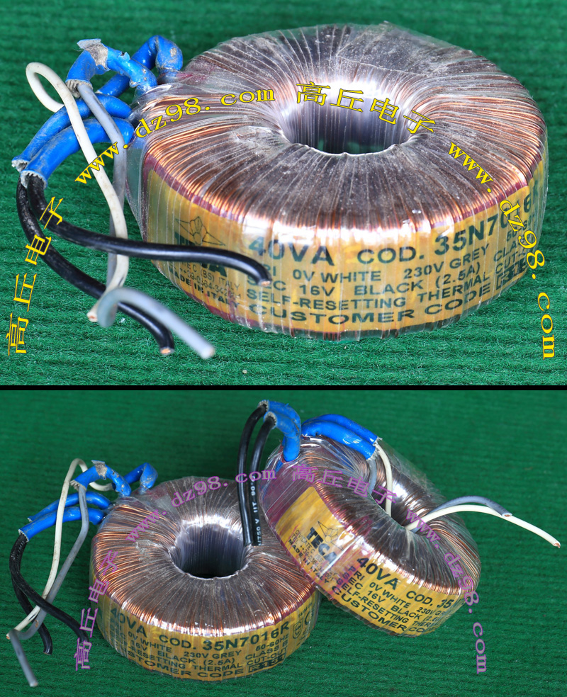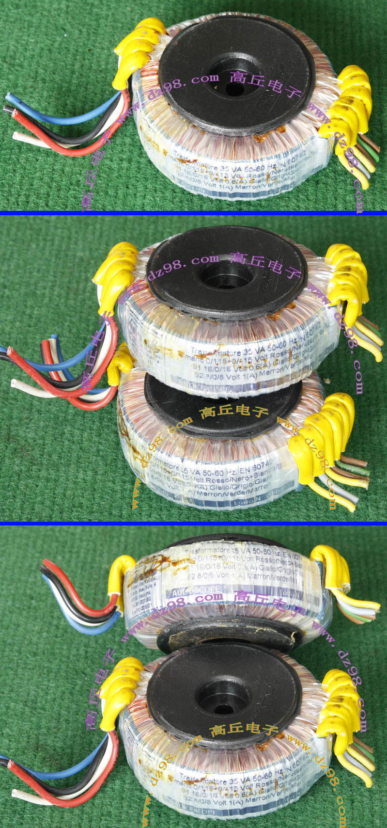 进口拆机件,外观8成新,输入1个绕组230V。输出绕组35V,功率50VA。外形尺寸:直径85毫米,高度35毫米,重量约750克。