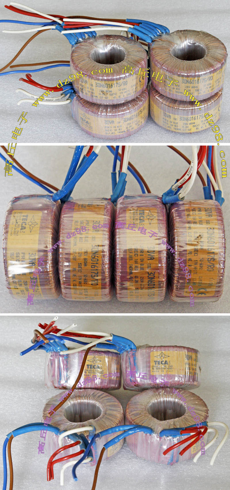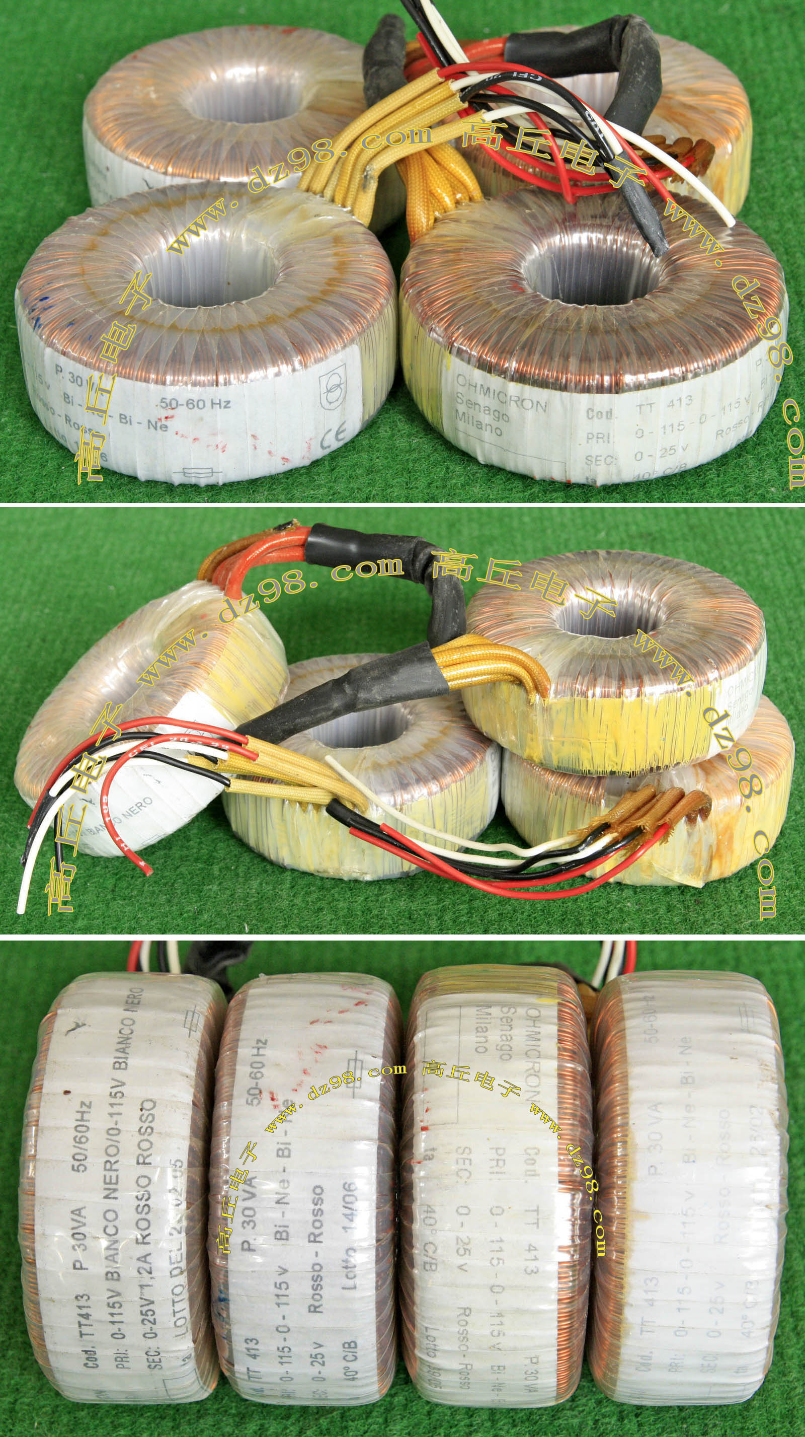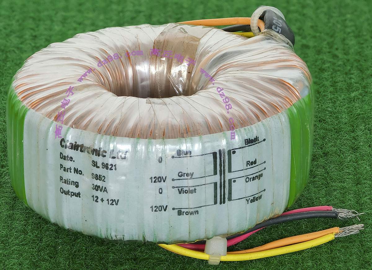 输入2个绕组;0-120V/0-120V,串联即0-240V,输出2个绕组,0-12V/0-12V、功率30VA,外形尺寸:直径70毫米,高度33毫米,重量约455克。