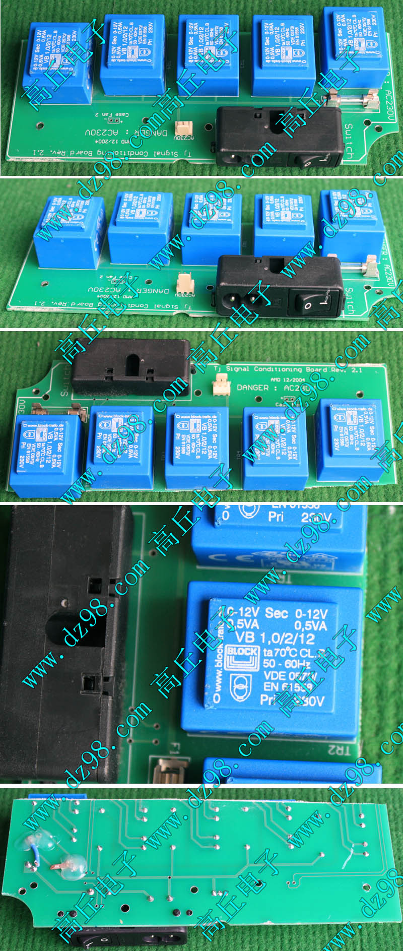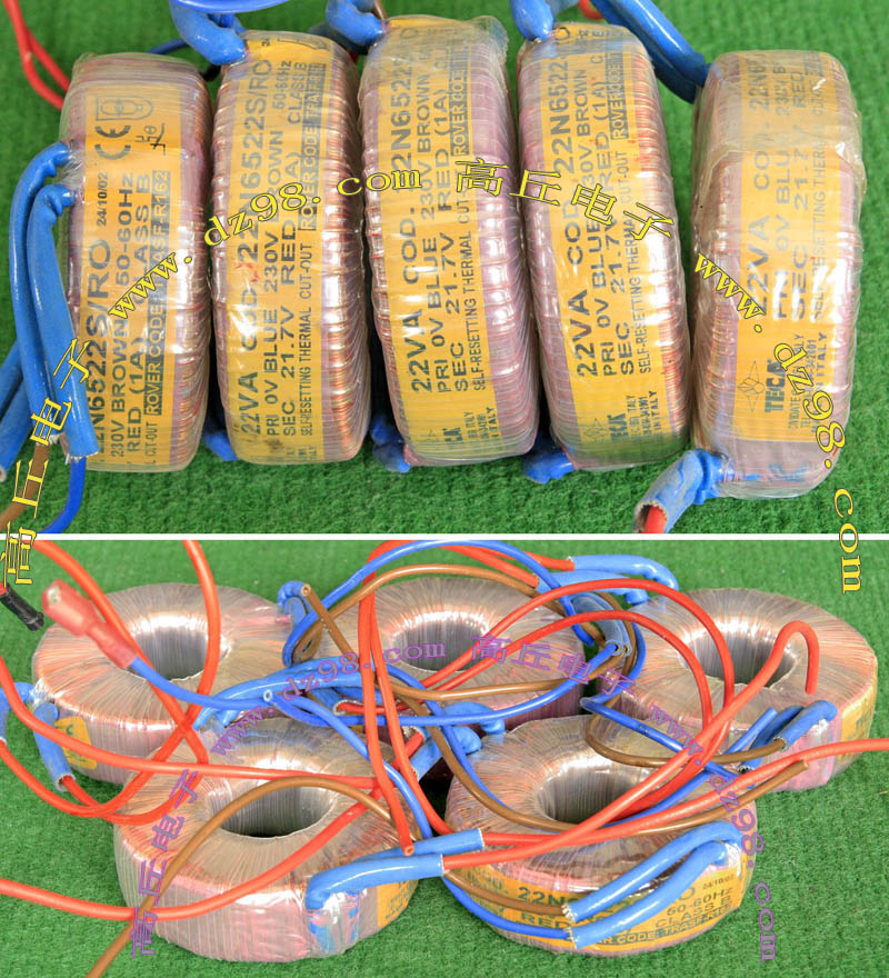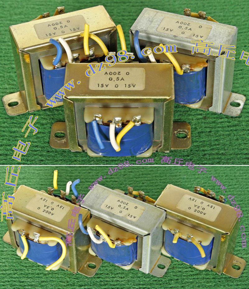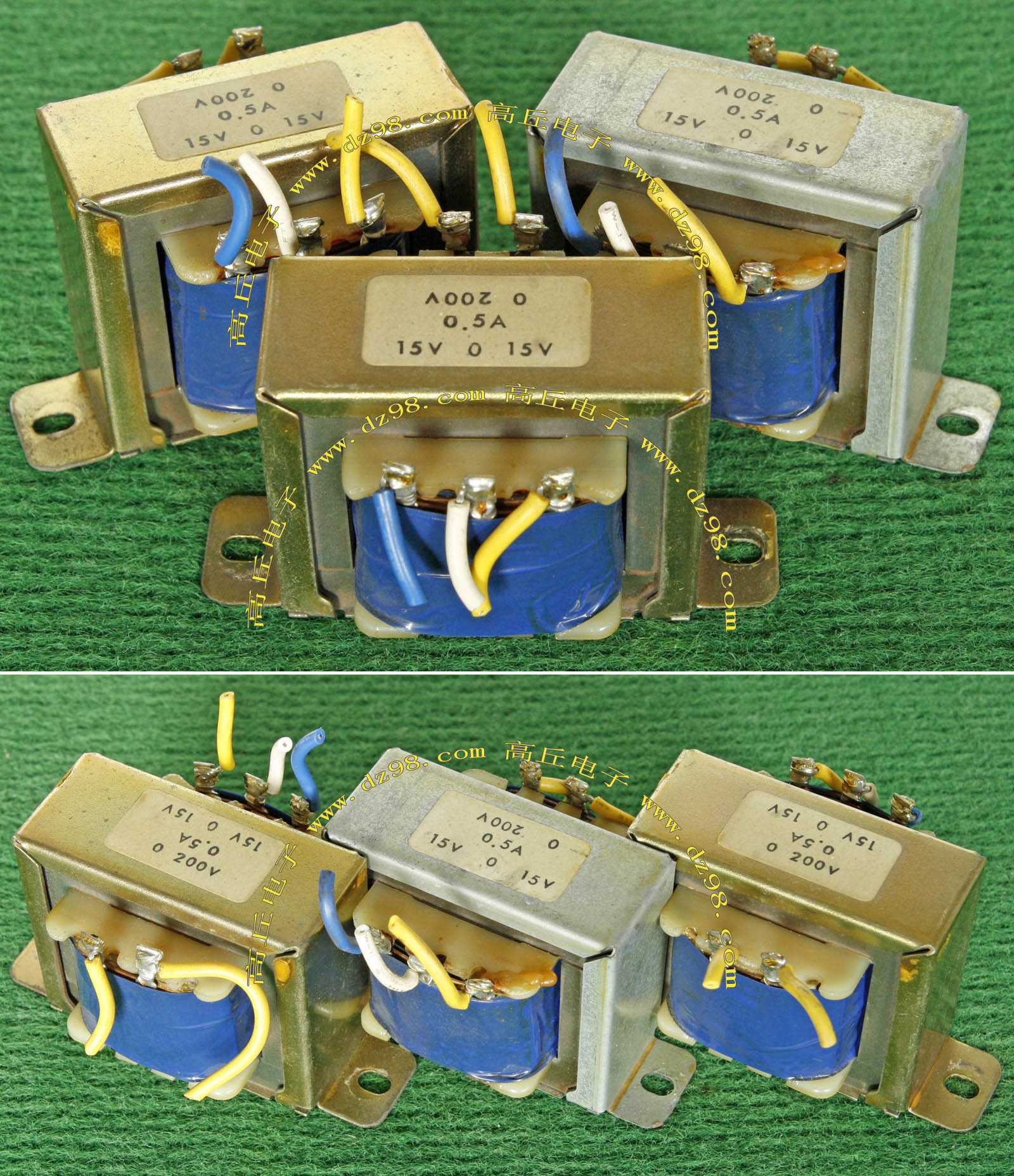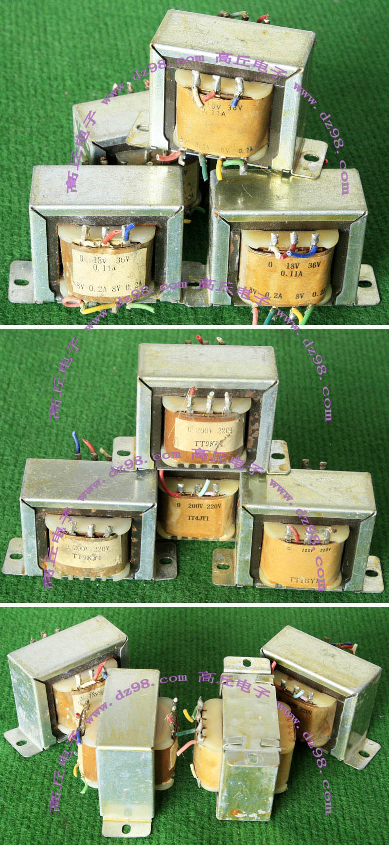 从进口设备拆下,输入AC230V,输出2组独立AC12V,每组功率0.5VA,总功率1VA。外形尺寸:32.5毫米x27.5毫米x高22毫米。