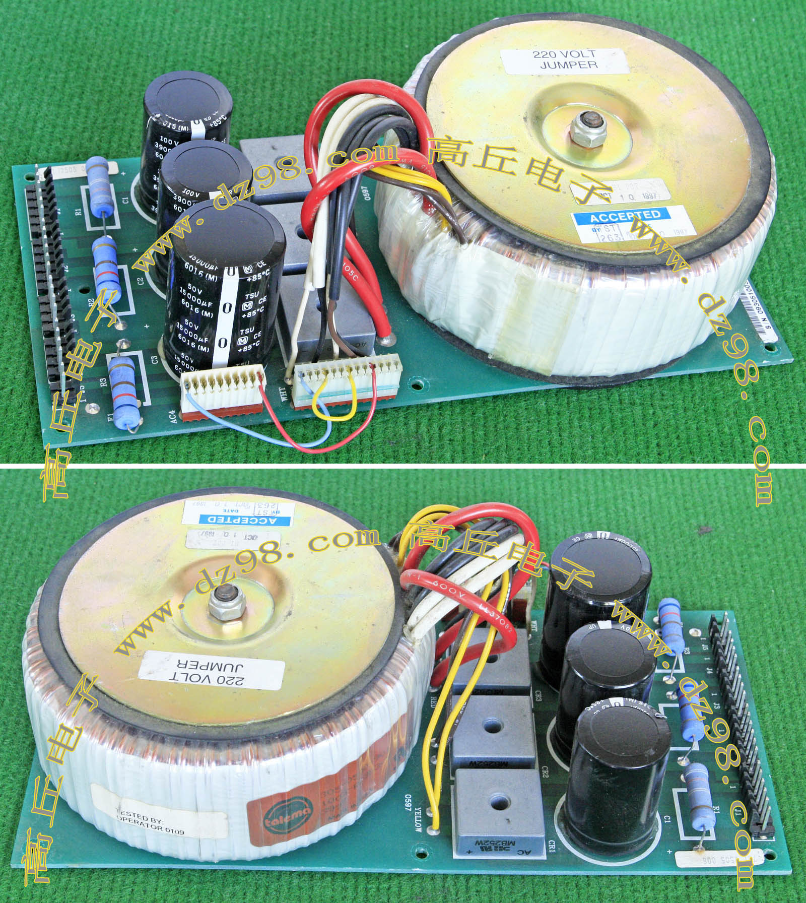 进口拆机,输入两组117V,串联就是234V,输出双22V,电流3.64A。外形尺寸:直径115毫米,厚度50毫米,重量约1900克。