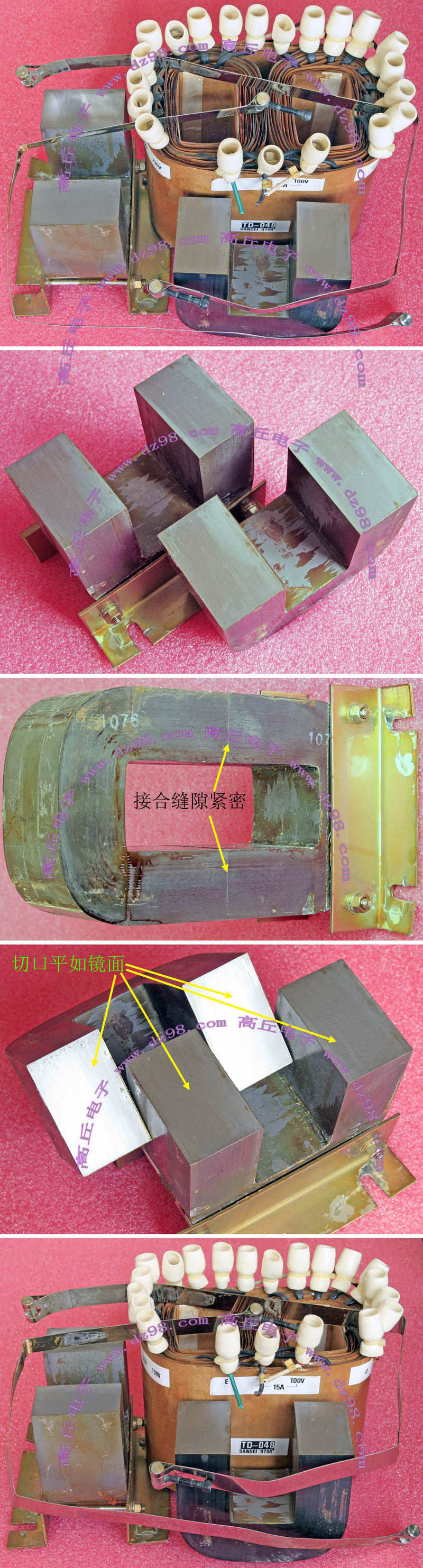 拆机件,进口设备拆下,产地;JAPAN,特殊的结构,和R型变压器相反做法,采用2卷矽钢片卷绕线圈,外观参照图片,外形尺寸:220毫米x200毫米x90毫米,重量约10.9公斤。