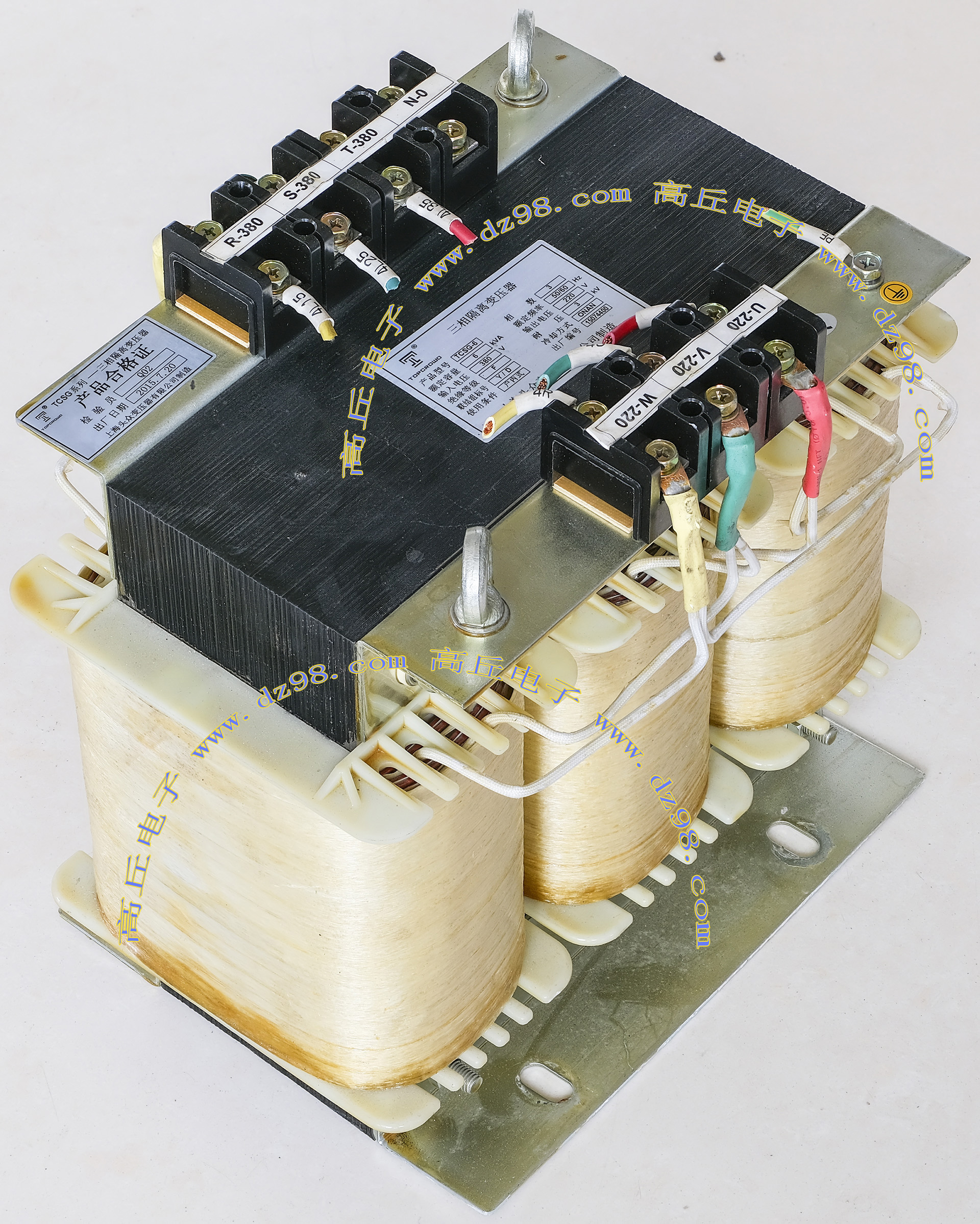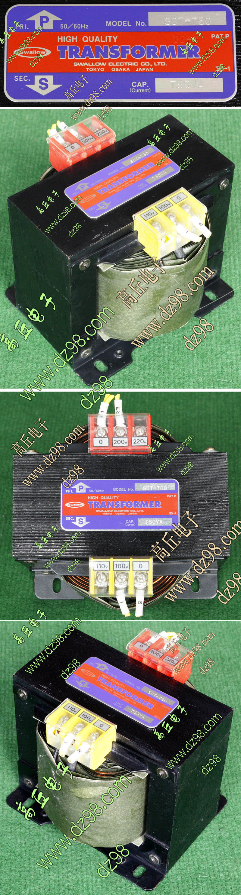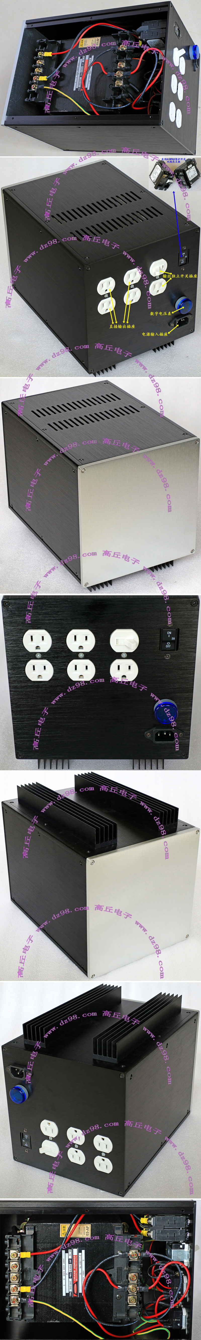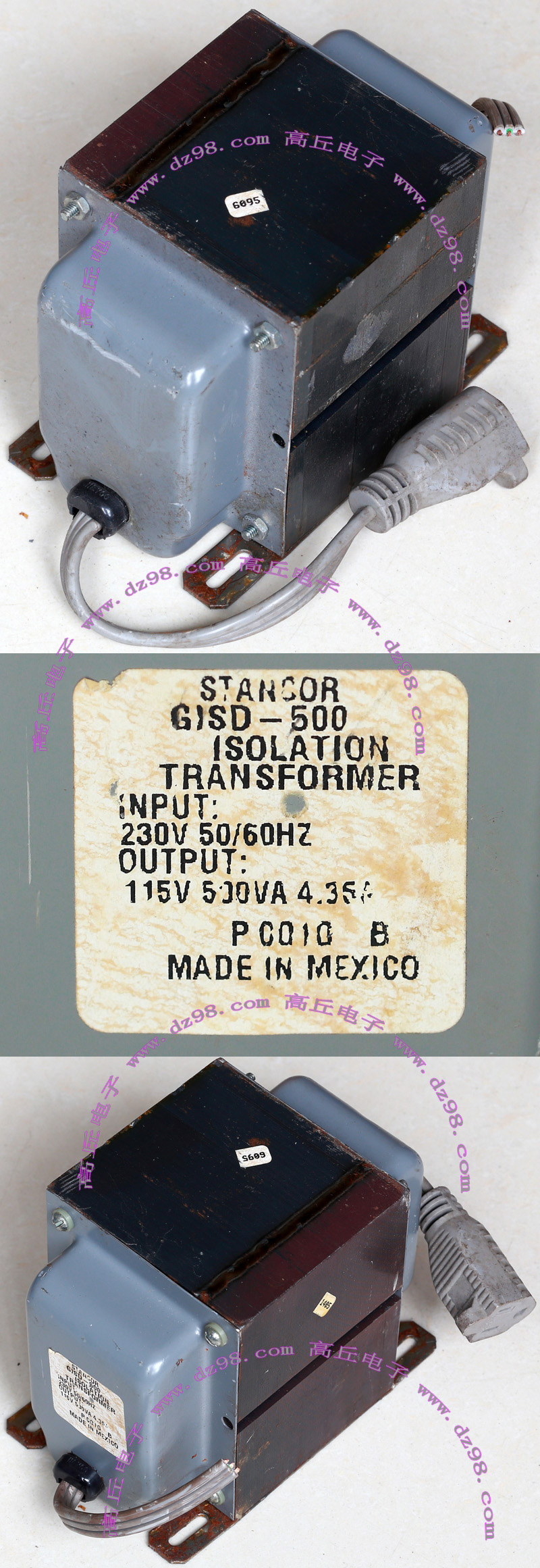 220V(可选择200V、220V或240V),输出AC100V、110V或者115V可选择。 功率500VA。外形尺寸:110x110x高110毫米,矽钢片尺寸:宽135毫米x高95毫米x叠厚50毫米,重量约6.78公斤。型号:SD21-500A,无货。