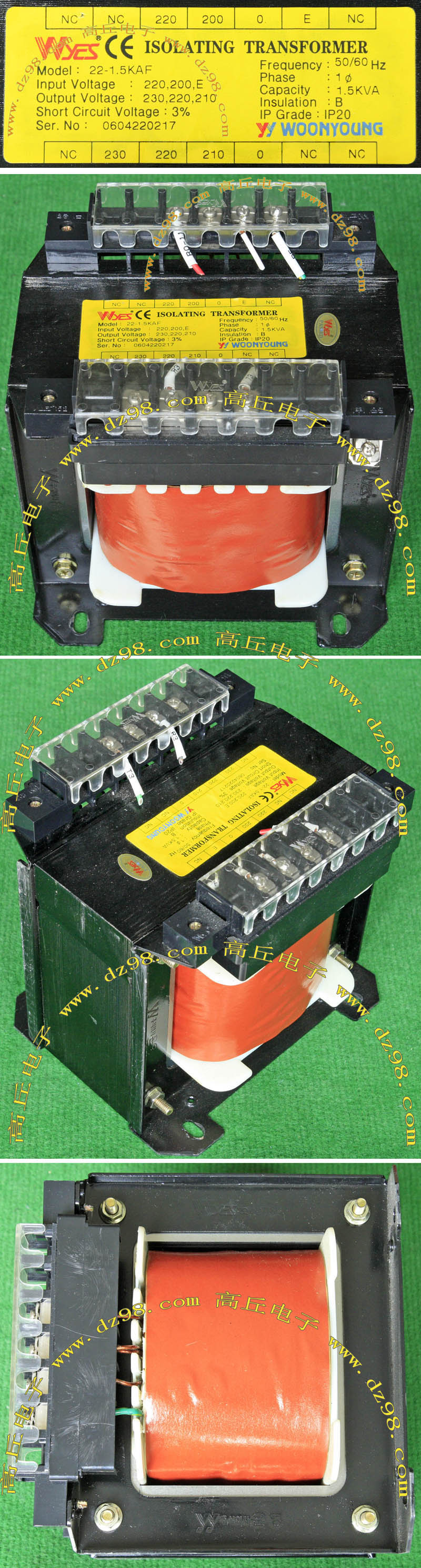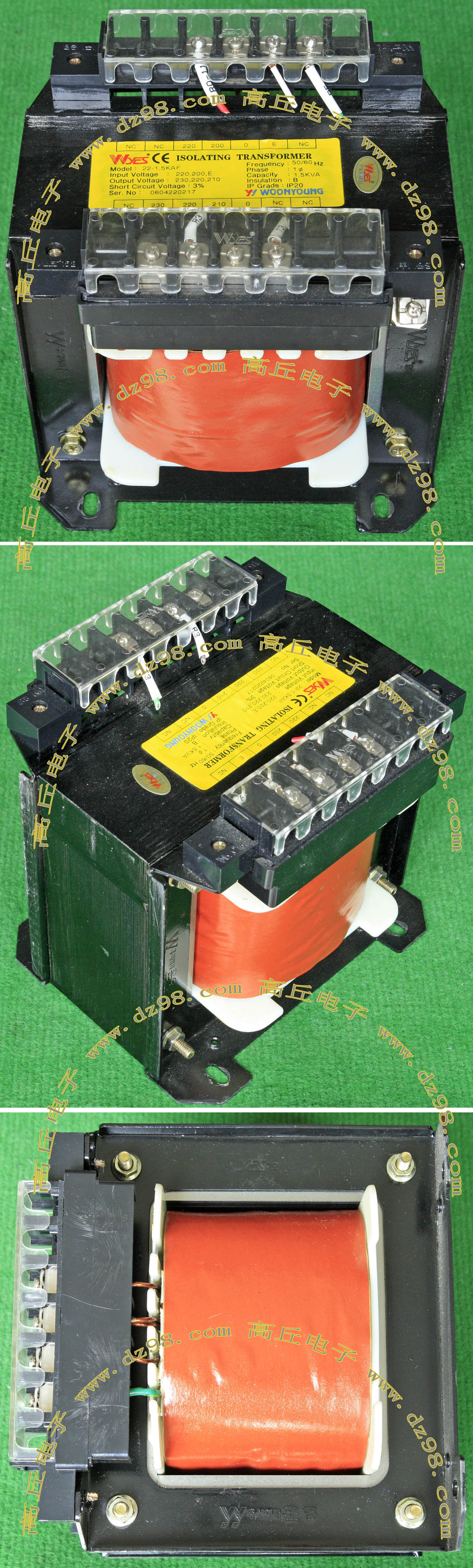 从进口设备拆下,外观8.5成新,输入AC 180V-200V-220V-240V可选,输出AC 200V-220V-240V可选。外形尺寸:90x90x高95毫米,矽钢片尺寸: