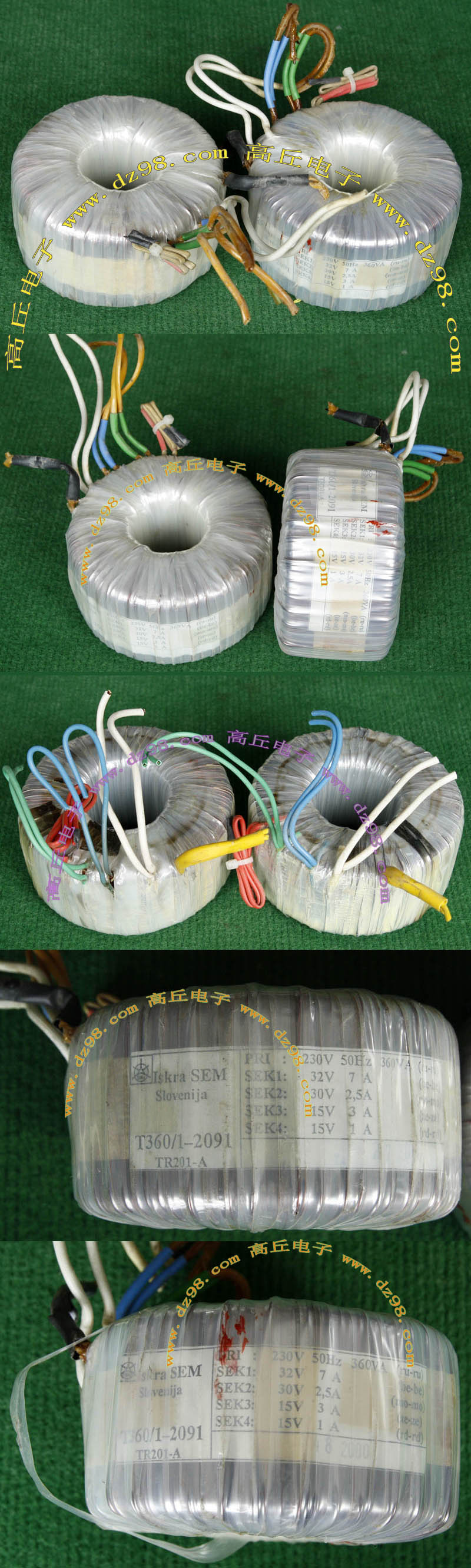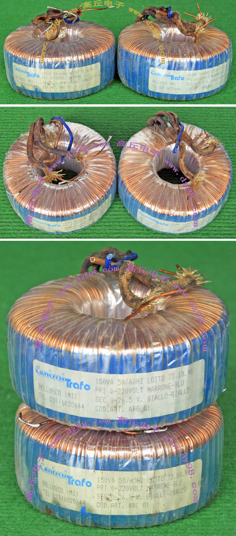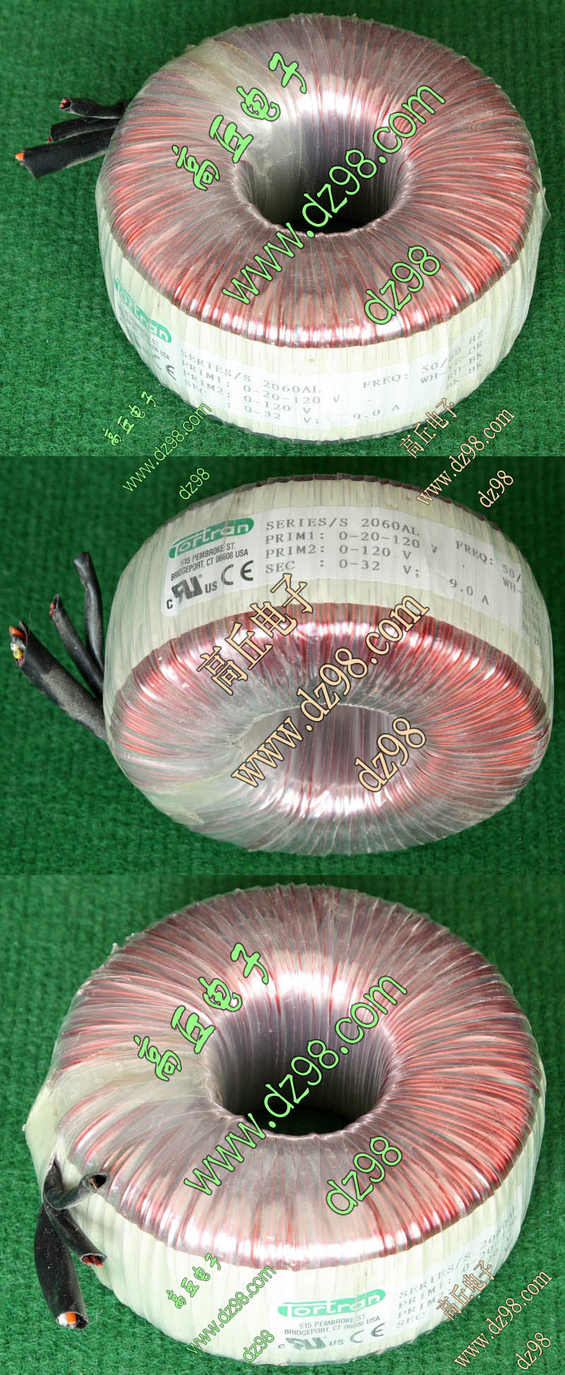 进口拆机件,外观8成新,输入2个绕组,分别是0-20-120V、0-120V,串联当220V/240V输入,或者当220V转100V自藕变压器。输出绕组32V,电流9A。外形尺寸:直径115毫米,高度58毫米,重量约2580克。