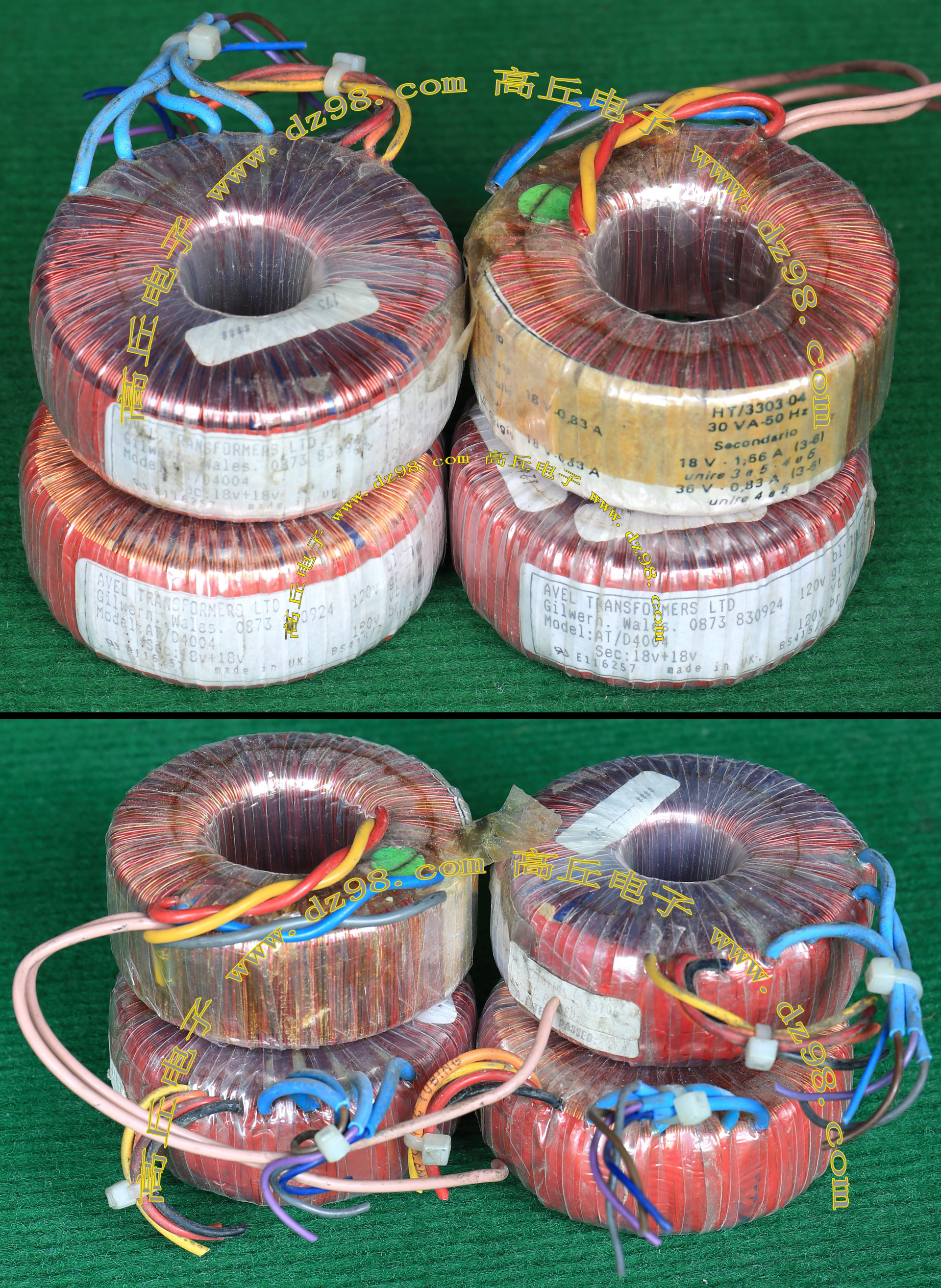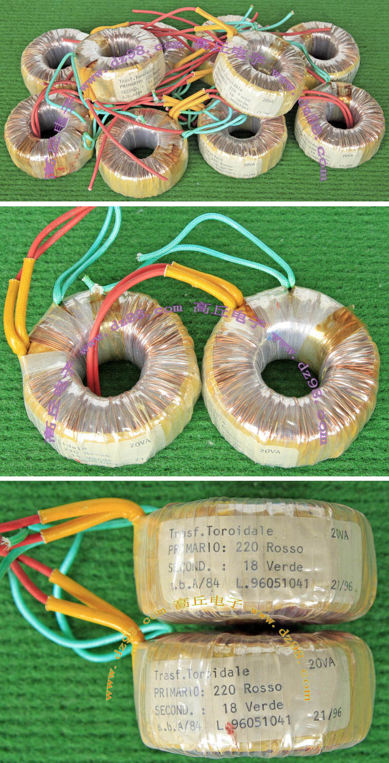 输入230V,输出2个9V绕组,0-9V/1.67A、0-9V/1.67A、功率30VA,外形尺寸:直径73毫米,高度33毫米,重量约439克。