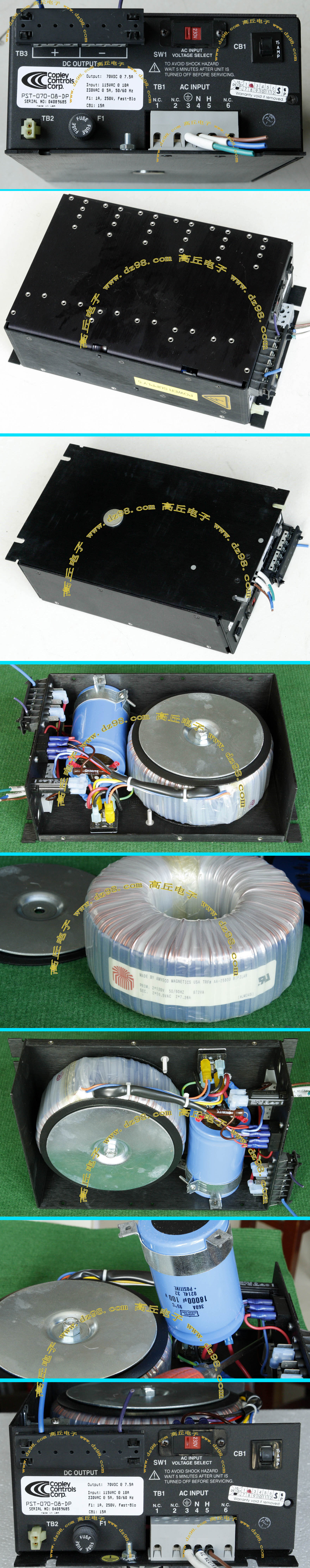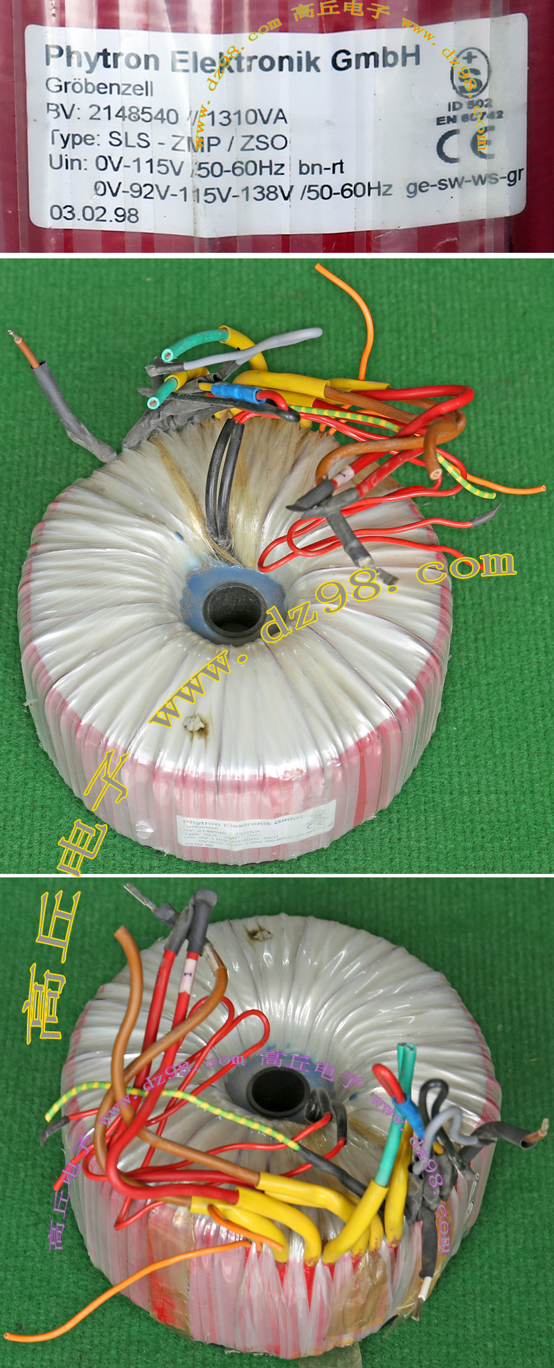 进口拆机,引线都被剪得很短了,厂牌phytron elektronik,输入2组115V(串联=230V),输出