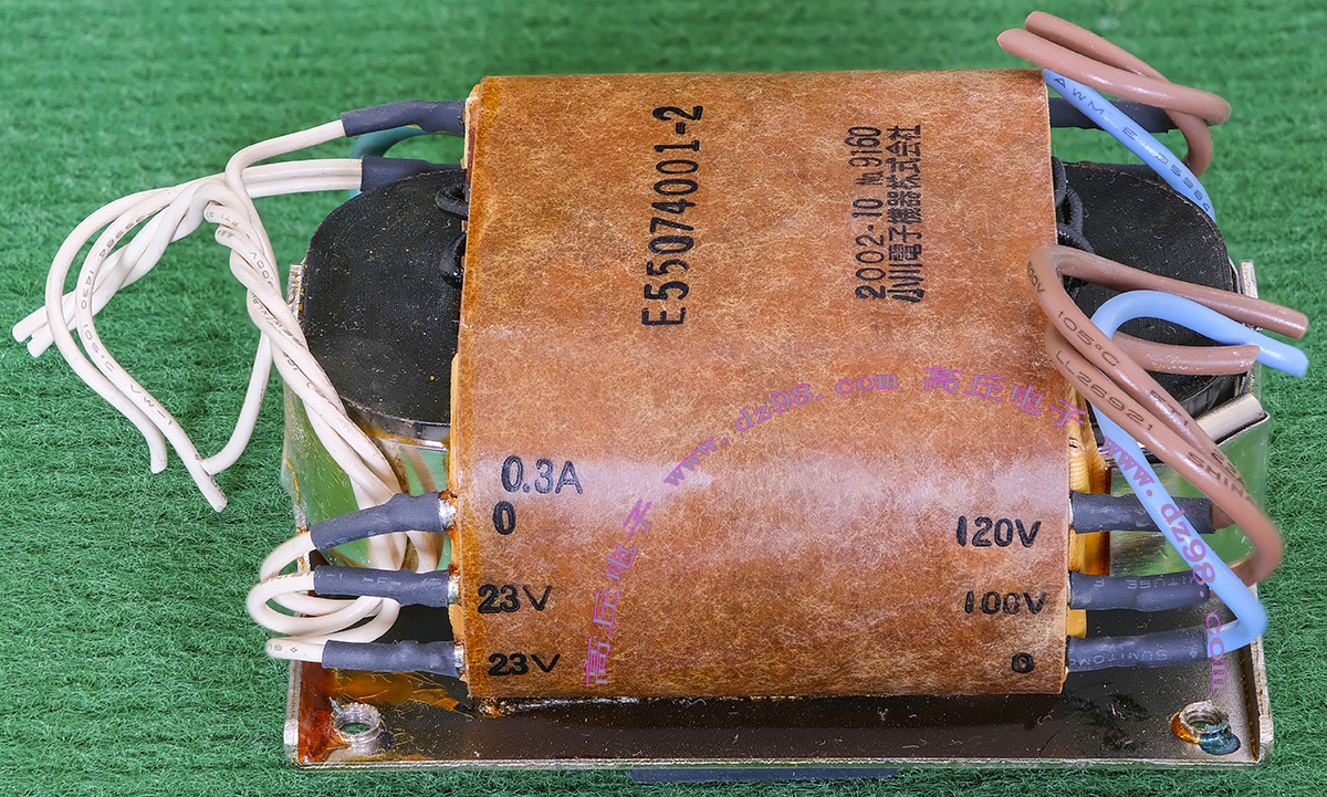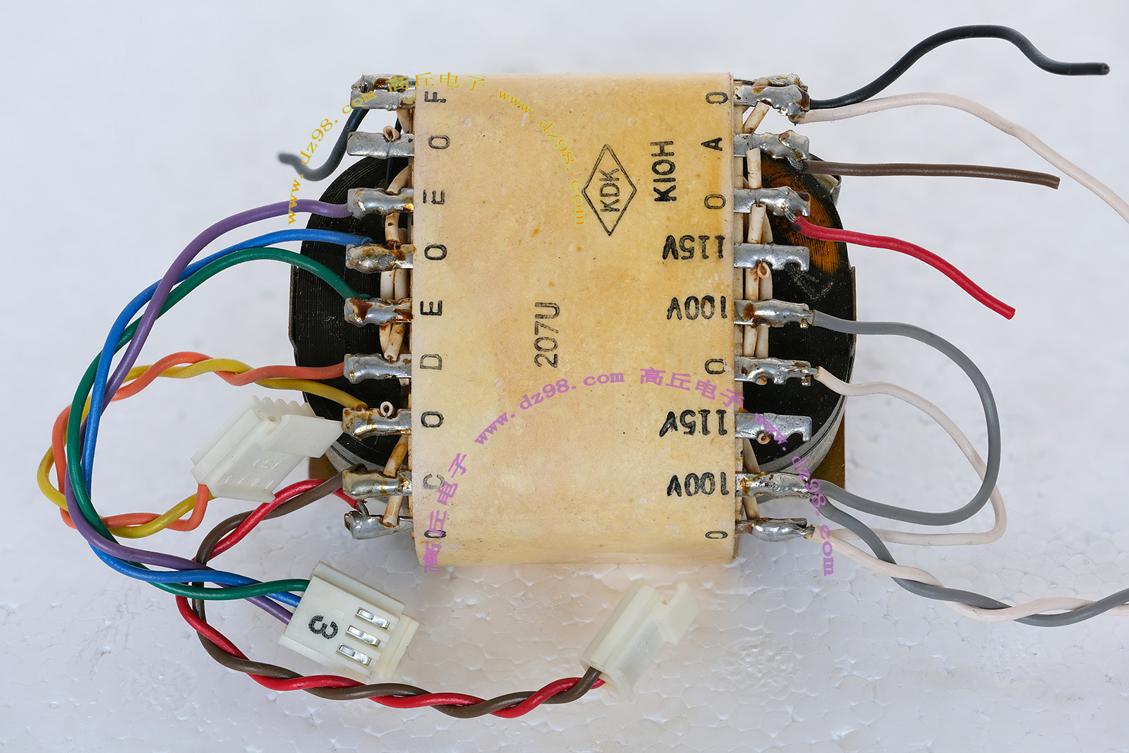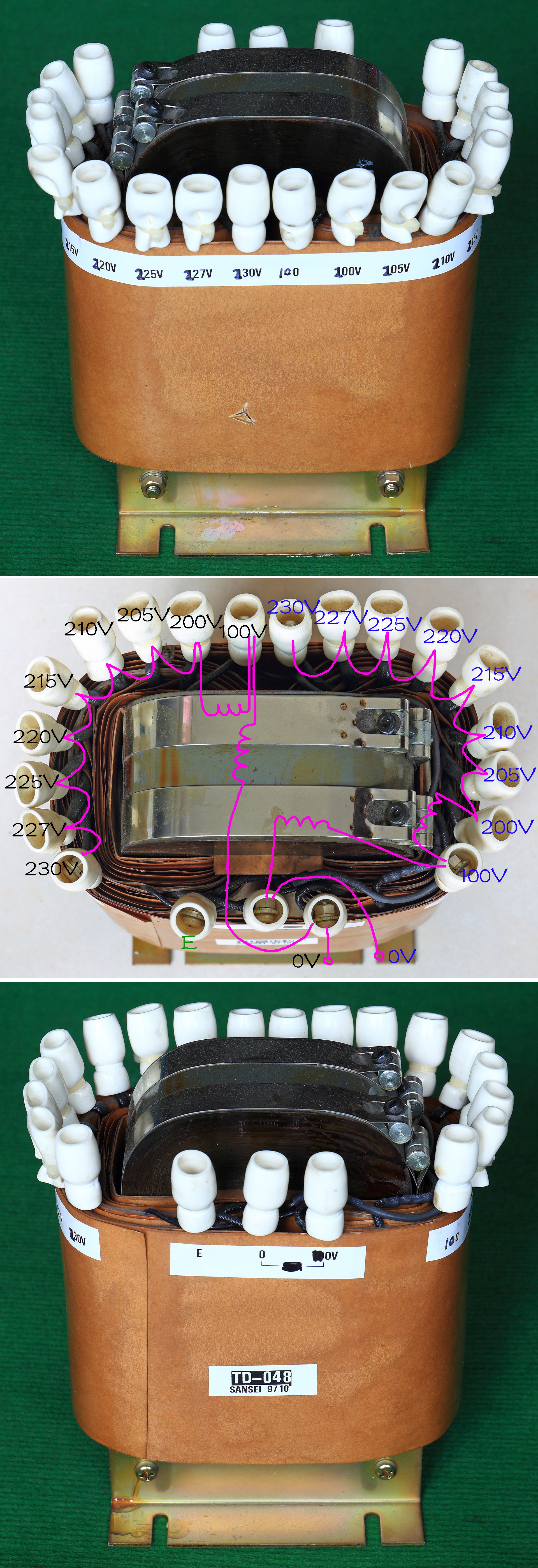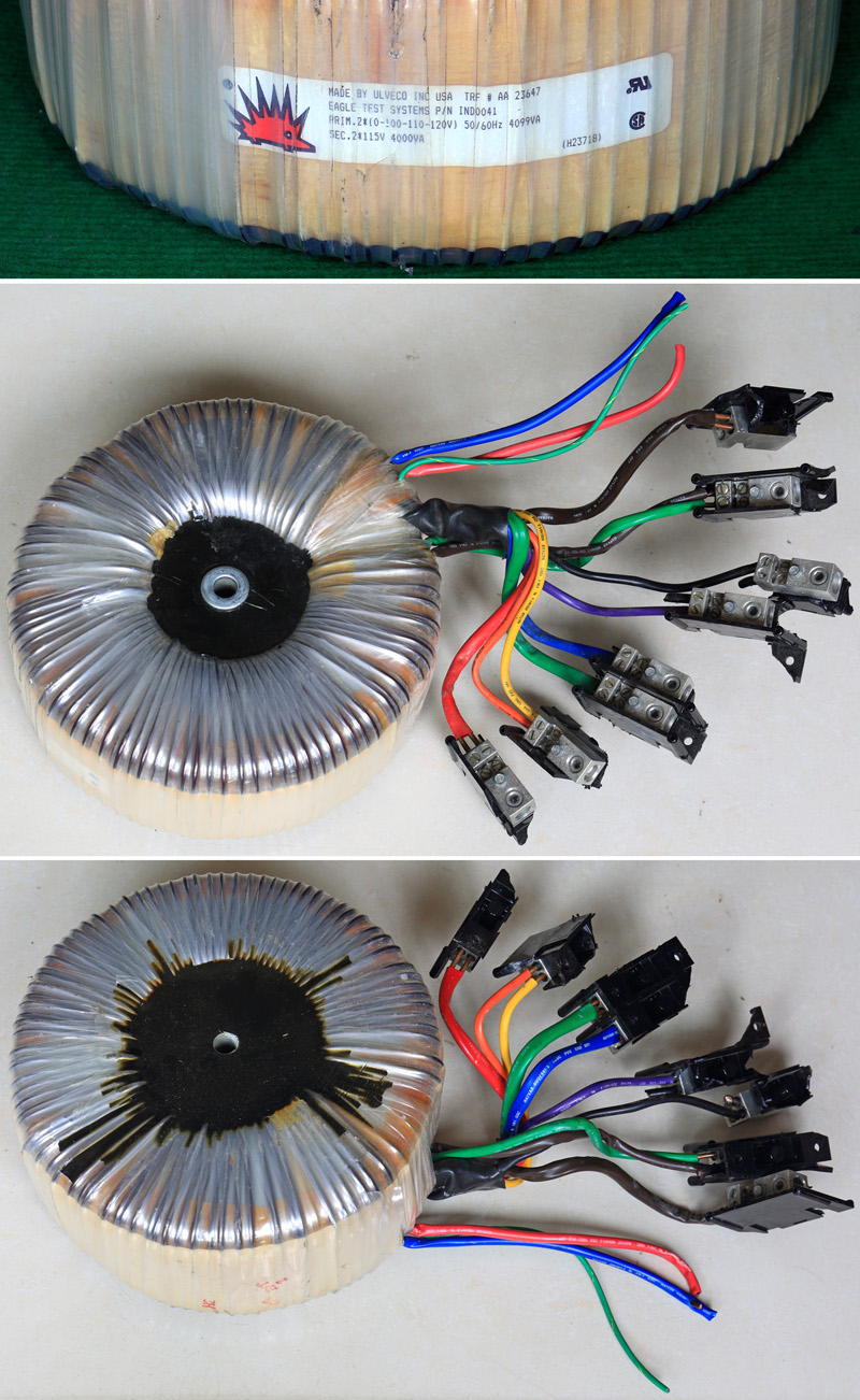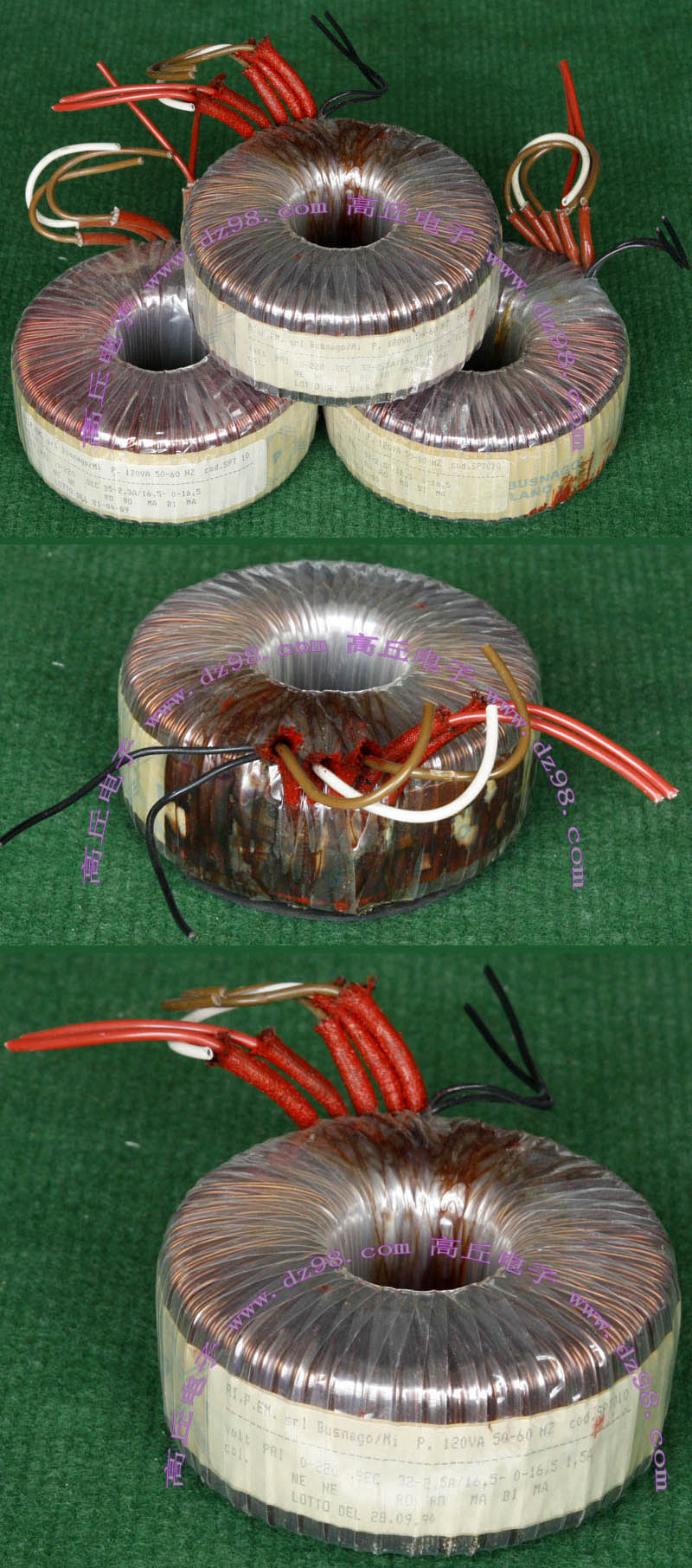 进口拆机件,外观8成新,输入有2个绕组,分别是0-100-120V、0-120V,串联当220V/240V输入。输出一个120V绕组,