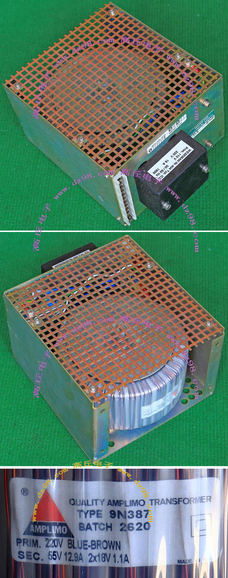 拆机件,日本设备拆下,实物参照图片,输入两组0-100-120V可串联输入0-200-240V,输出2个20V-0.35A、一个10V-0.1A、一个10V-0.5A。外形尺寸;92x72x38毫米,重量约710克。