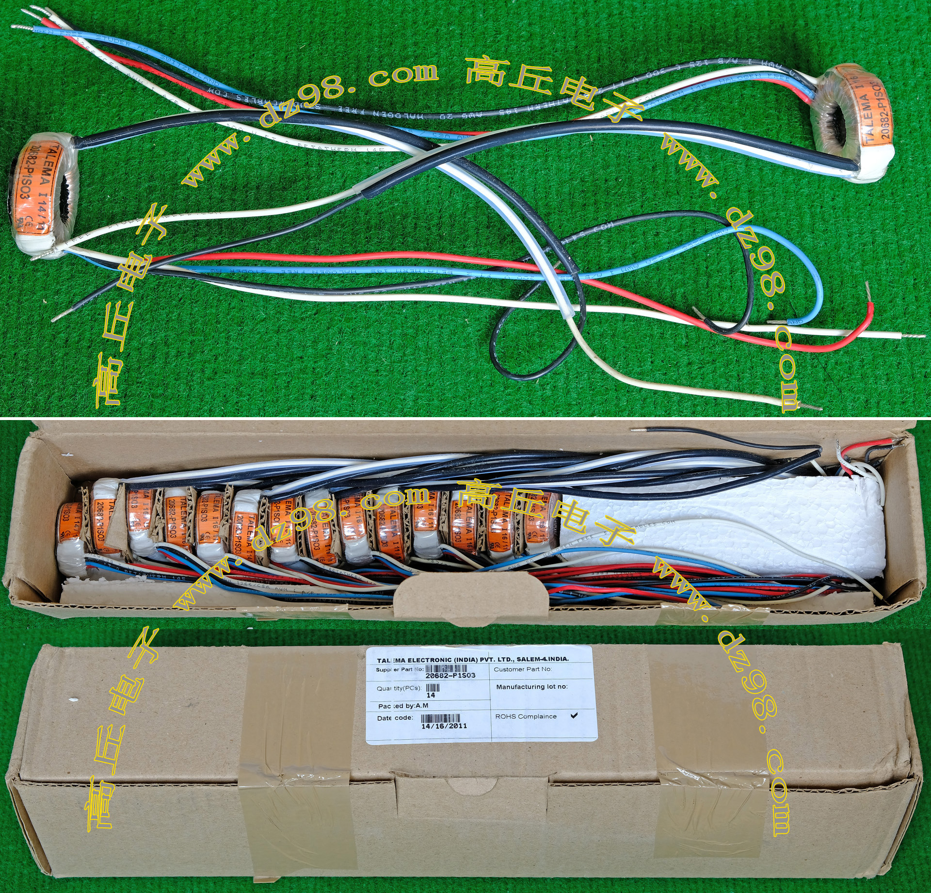 进口拆机件,线头都不长,外观8成新,共3个绕组,2个208V绕组,1个32V绕组,外形尺寸:直径106毫米,高度32毫米,重量约900克。