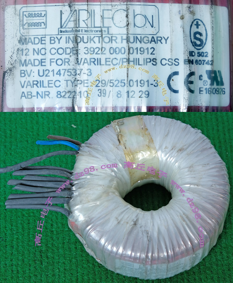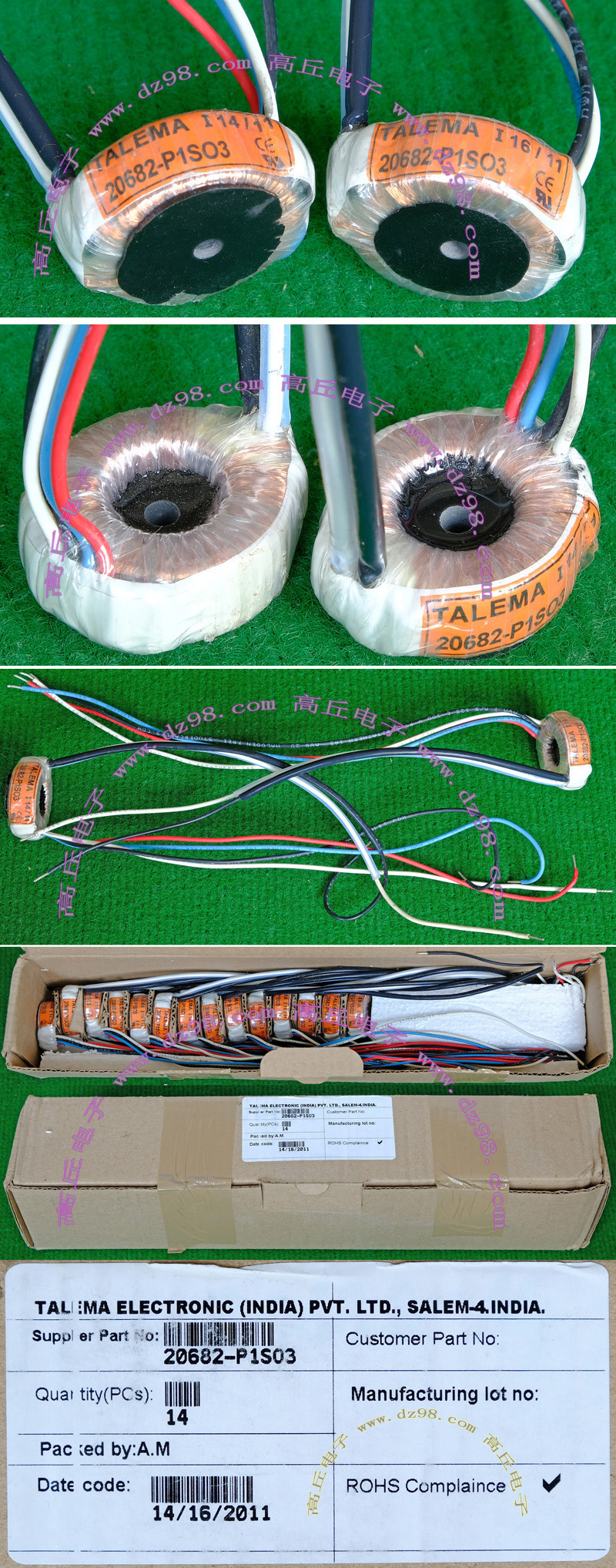 产地来自欧洲,变压器尺寸:32.5毫米x27.5毫米x高度29毫米(连焊脚32.5毫米)、重量约108克、变压器采用环氧胶一体固化。