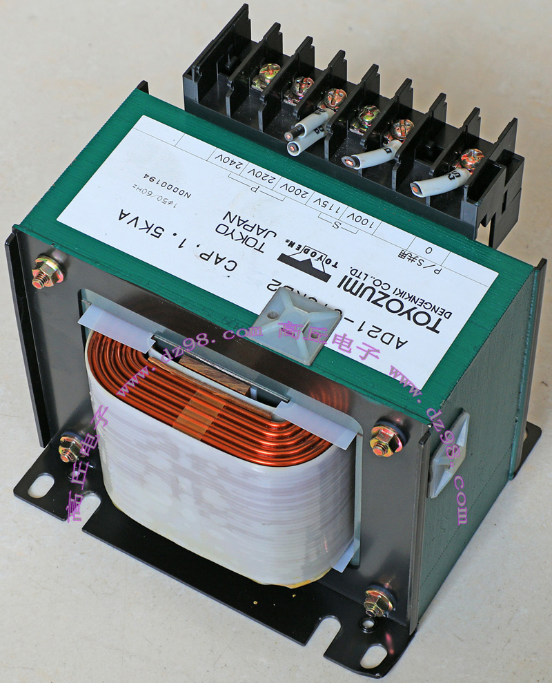 从进口设备拆下,外观9成新,输入AC 220V(可选择200V或220V),输出AC100V或者110V可选择。 功率200VA。外形尺寸:106x96x高105毫米,矽钢片尺寸:宽96毫米x高80.5毫米x叠厚56毫米,重量约3.46公斤。型号:TRH200-21N,无货。 |