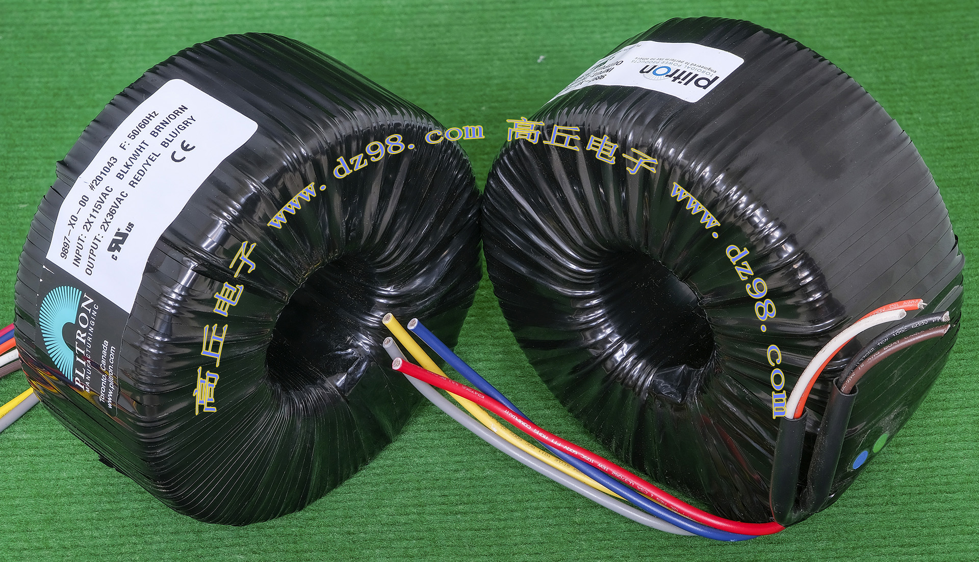 国外专做环形变压器厂家PLITRON生产,进口拆机,实物参靠图片,输入2组115V可串联230V、输出2组36V可串联72V,功率约600VA。外形尺寸;直径140毫米,高度76毫米,重量约5220克。