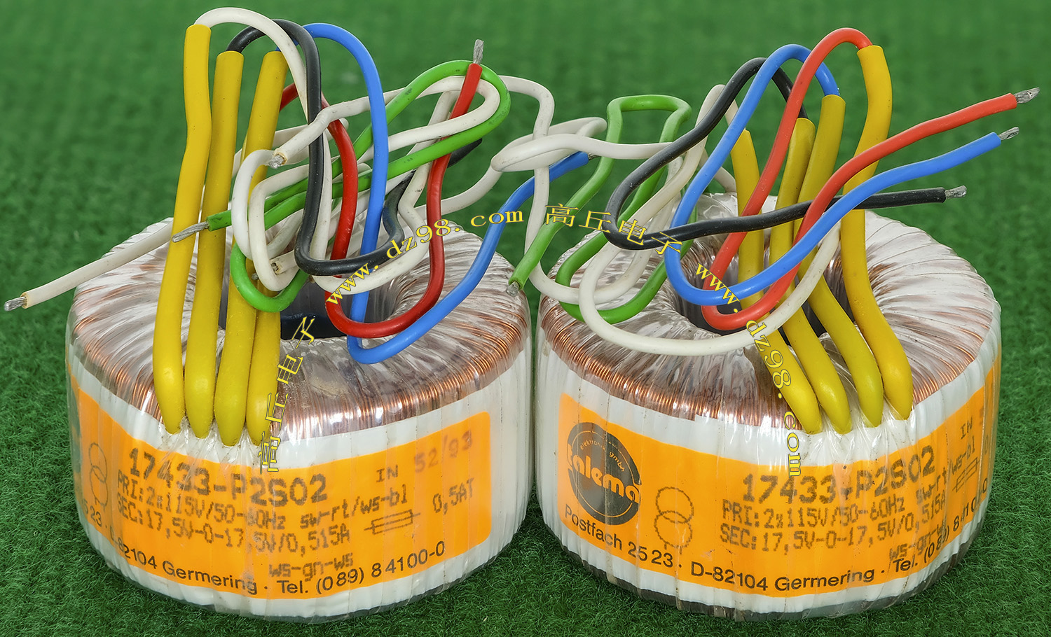 输入2个绕组;0-115V,串联即0-230V,输出2个绕组,17.5V-0V-17.5V、电流0.515A,外形尺寸:直径65毫米,高度35毫米,重量约355克。
