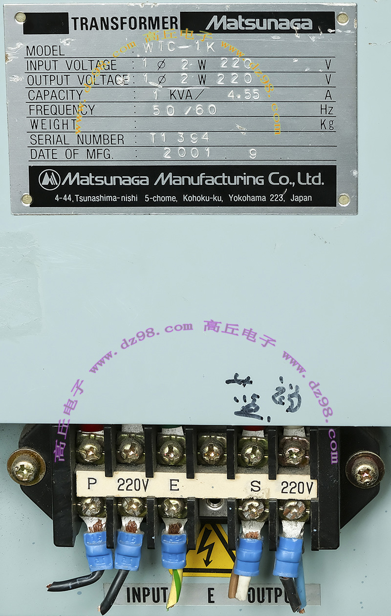 日本产Matsunaga IKVA 220V转220V电源隔离变压器AQ312