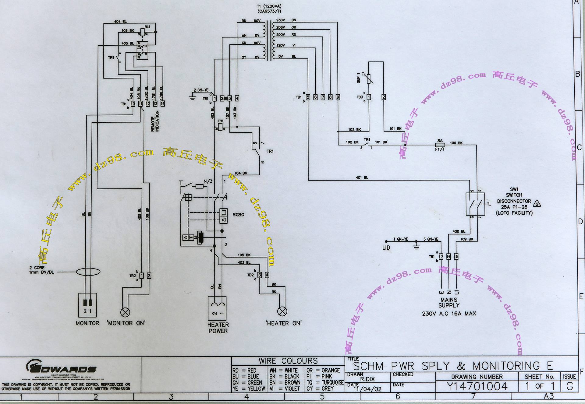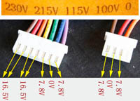 接线颜色定义;黑-红=43V、橙-黄=230V、棕-紫-灰=0V-9.6V-19.2V、棕-紫-灰=0V-9.6V-19.2V、蓝-蓝不接。