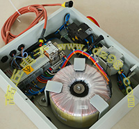 输入AC230V,隔离输出43V-16A、2个独立0V-9.6V-18.2V,电流约8A,总功率约1000VA。