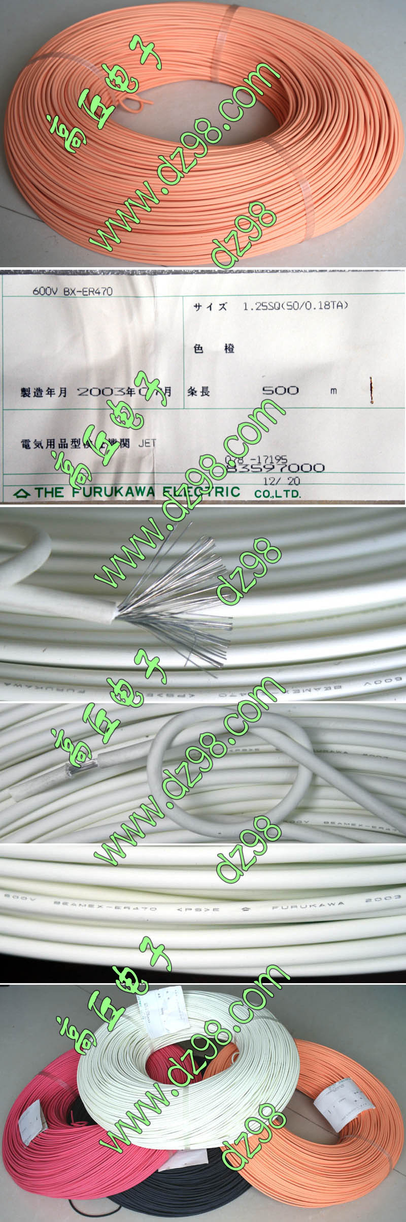 | 日本古河1.25平方橙色多丝耐温阻燃线AS21 | 厂牌:日本-古河 FURUKAWA,每卷长度500米,每卷重量约9750克,颜色:橙色(在中国即是橘红色),内部由50条直径0.18mm镀镊铜丝组成,外皮是耐高温的阻燃绝缘材料制,线外直径约3.1mm,线表皮印字:600V BEAMEX-ER470 <PS> E FURUKAWA 2003,很细的文字印得非常精致,广泛用在军工产品,航空设备,冶炼设备,电动机车和汽车电路,家庭的微波炉和空调里也有用到。 | 单价每米3元。 |